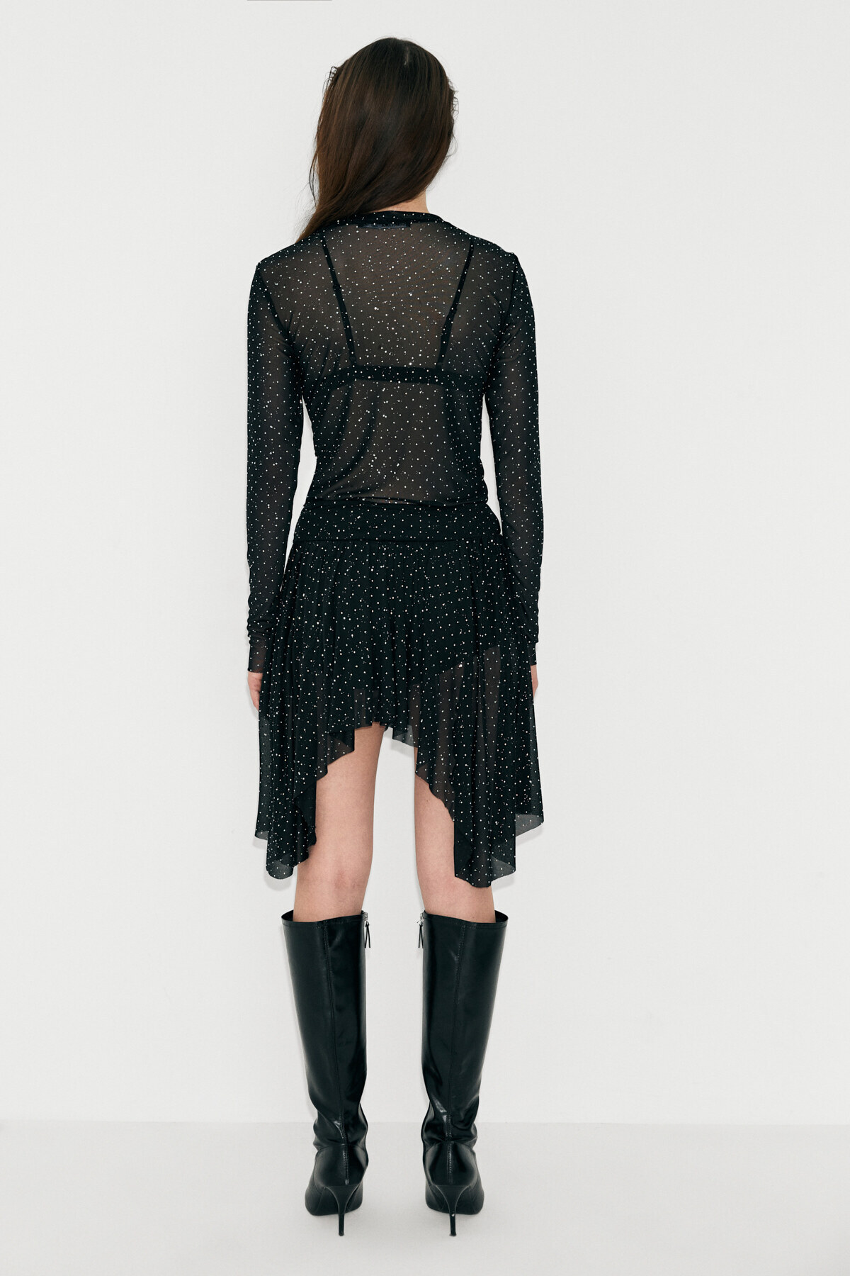VERDADES Kadın Yuvarlak Yaka Tül Üzeri Taş Detaylı Uzun Kollu Transparan Şık Siyah Bluz VERDADES Kadın Yuvarlak Yaka Tül Üzeri Taş Detaylı Uzun Kollu Transparan Şık Siyah Bluz VERDADES01082025 XL