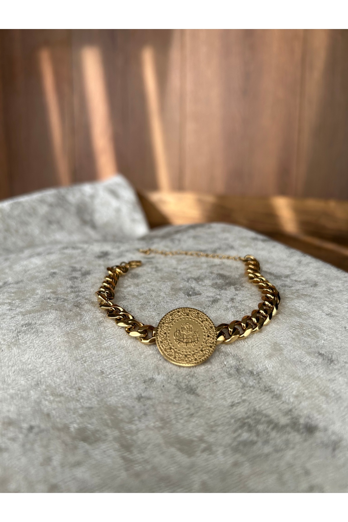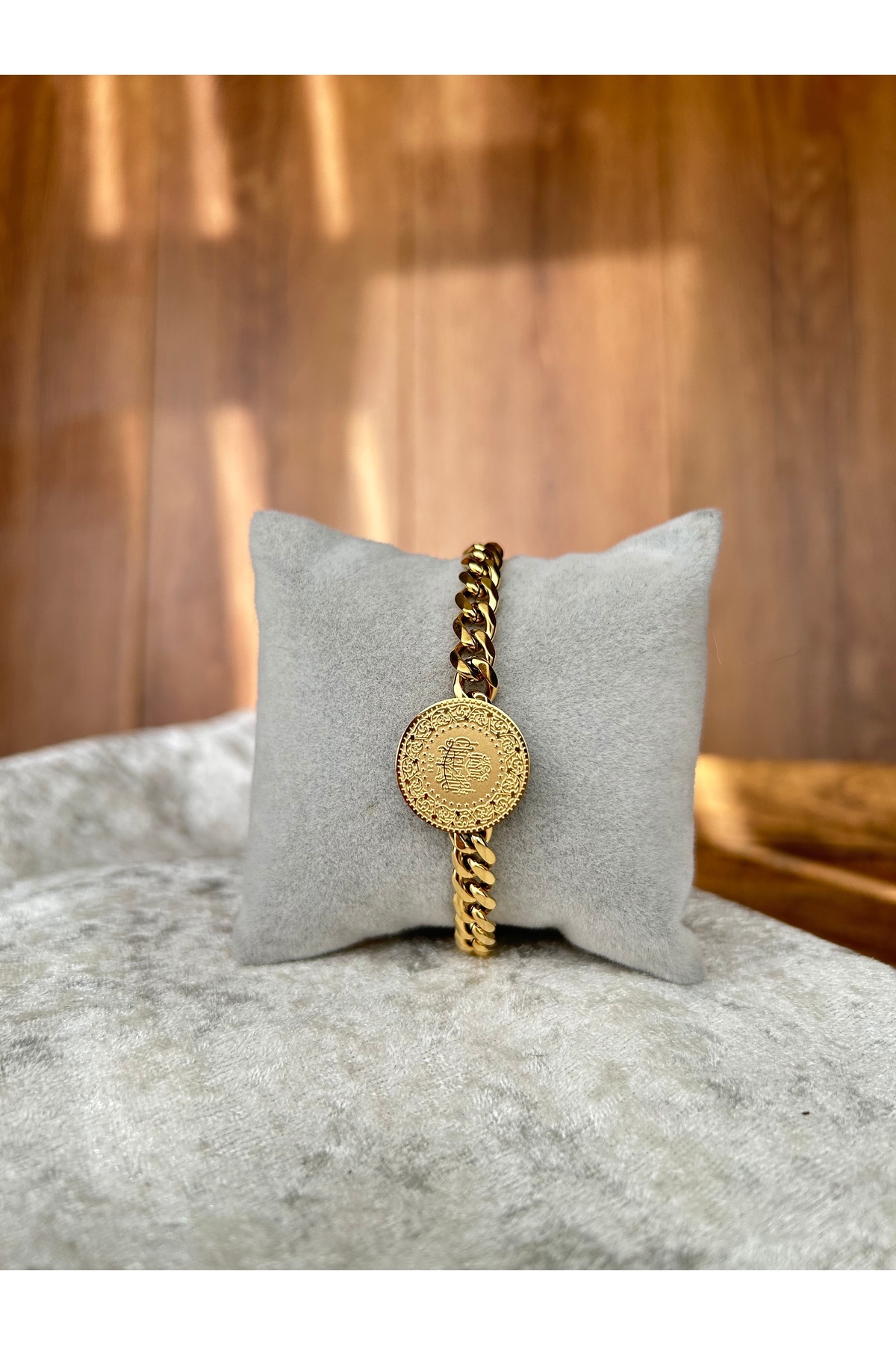 Kadın Çelik Gold Tuğra Zincir Bileklik – Osmanlı Motifli Kadın Çelik Gold Tuğra Zincir Bileklik – Osmanlı Motifli ÇW-002 Standart