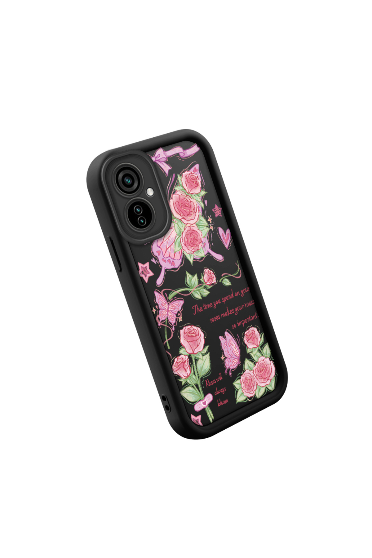 Tecno Camon 19 Neo Uyumlu Siyah Silikon Gül ve Kelebek Desenli Elegan Telefon Kılıfı Tecno Camon 19 Neo Uyumlu Siyah Silikon Gül ve Kelebek Desenli Elegan Telefon Kılıfı تک سایز