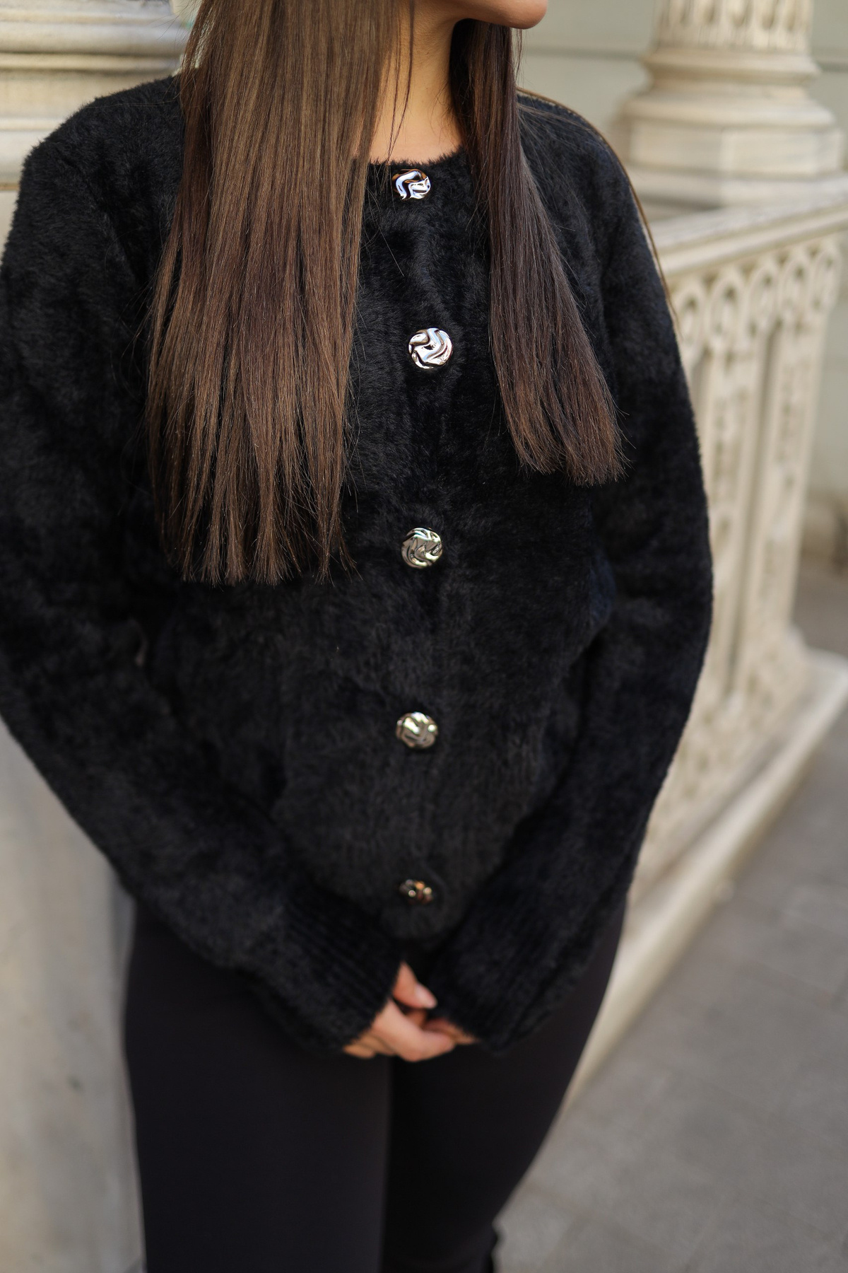 Kadın Düğmeli Sakallı Yumoş Triko Hırka Kadın Düğmeli Sakallı Yumoş Triko Hırka 2042 Standart