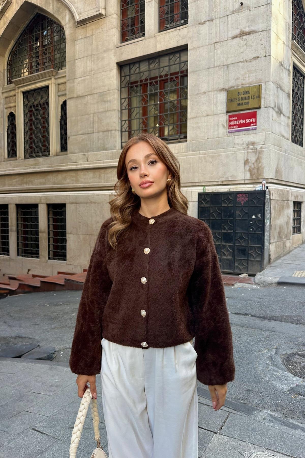 Kadın Düğmeli Sakallı Yumoş Triko Hırka Kadın Düğmeli Sakallı Yumoş Triko Hırka 2042 Standart