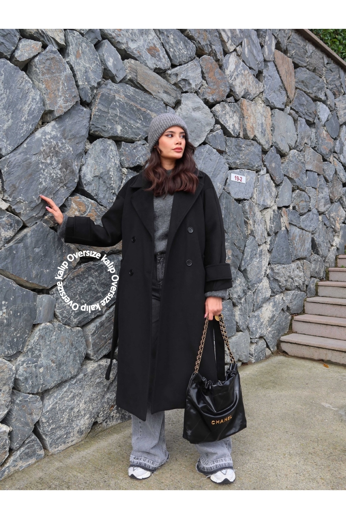 kadın düğme detaylı astarlı midi boy kuşaklı kaşe kaban NBFT004 kadın düğme detaylı astarlı midi boy kuşaklı kaşe kaban NBFT004 46