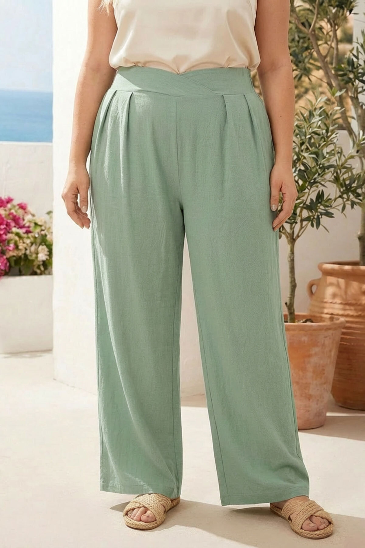 Büyük Beden Pileli Cepli Geniş Paça Esnek Kumaşlı Pantolon 875-V Büyük Beden Pileli Cepli Geniş Paça Esnek Kumaşlı Pantolon 875-V 875-V-KEMERLI 4XL
