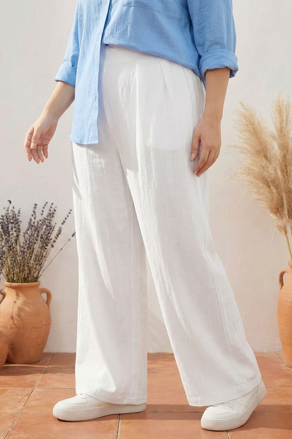 Büyük Beden Pileli Cepli Geniş Paça Esnek Kumaşlı Pantolon 875-V Büyük Beden Pileli Cepli Geniş Paça Esnek Kumaşlı Pantolon 875-V 875-V-KEMERLI 4XL