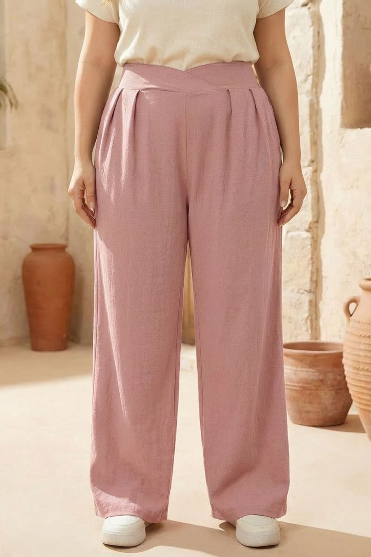 مشخصات فنی Büyük Beden Pileli Cepli Geniş Paça Esnek Kumaşlı Pantolon 875-V