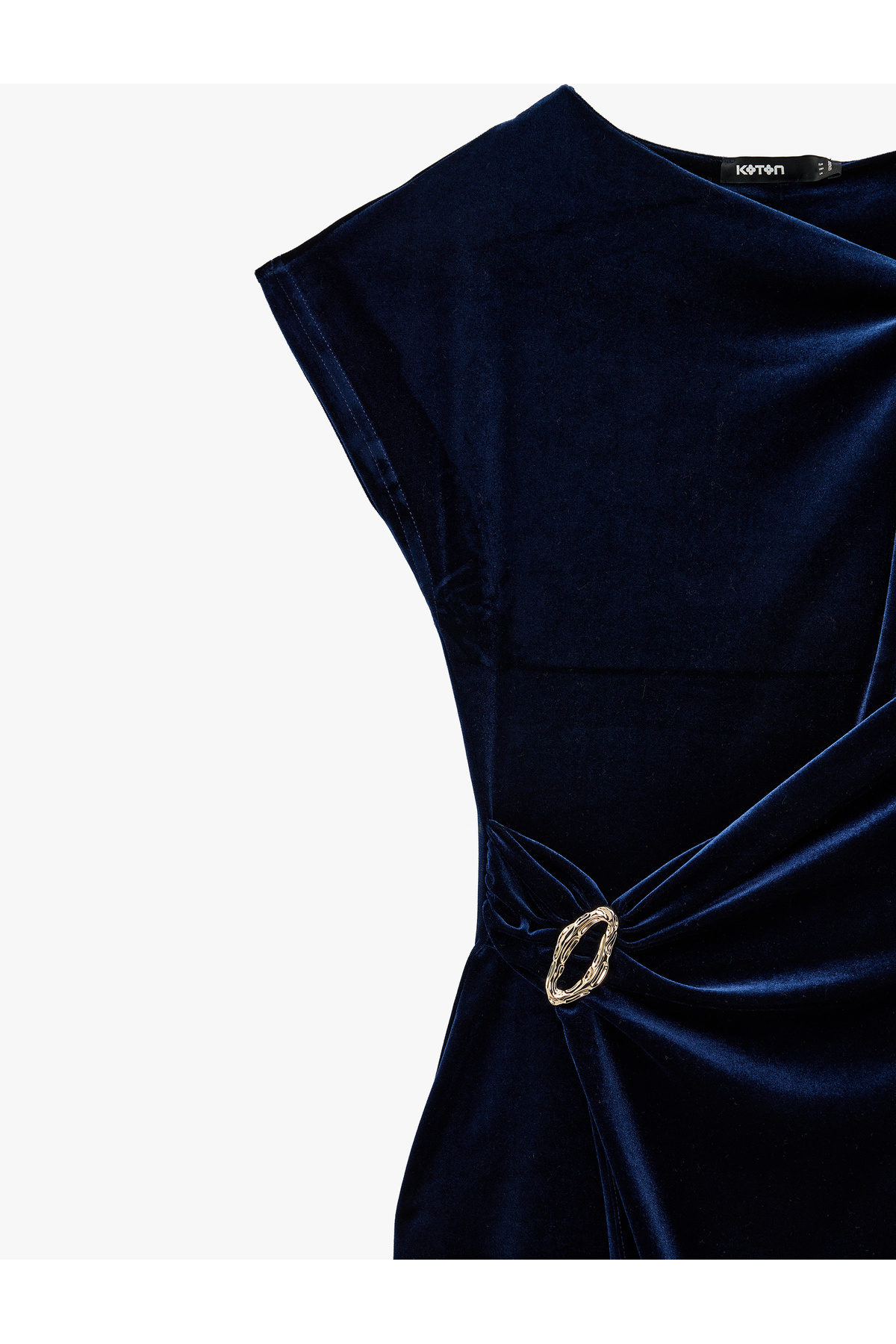 Aksesuarlı Kolsuz Yırtmaçlı Asimetrik Kruvaze Midi Boy Kadife Elbise Aksesuarlı Kolsuz Yırtmaçlı Asimetrik Kruvaze Midi Boy Kadife Elbise 6WAK80358EK XL