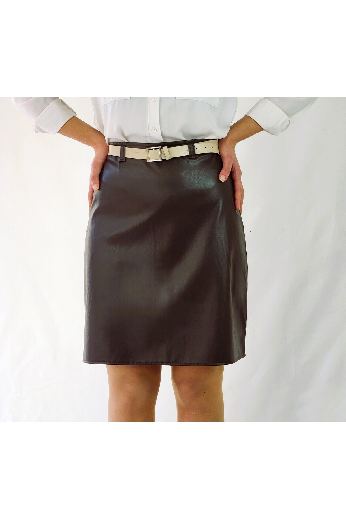 Yüksek Bel Kahverengi Deri Diz Üstü Çan Etek Yüksek Bel Kahverengi Deri Diz Üstü Çan Etek kemerli1 2XL