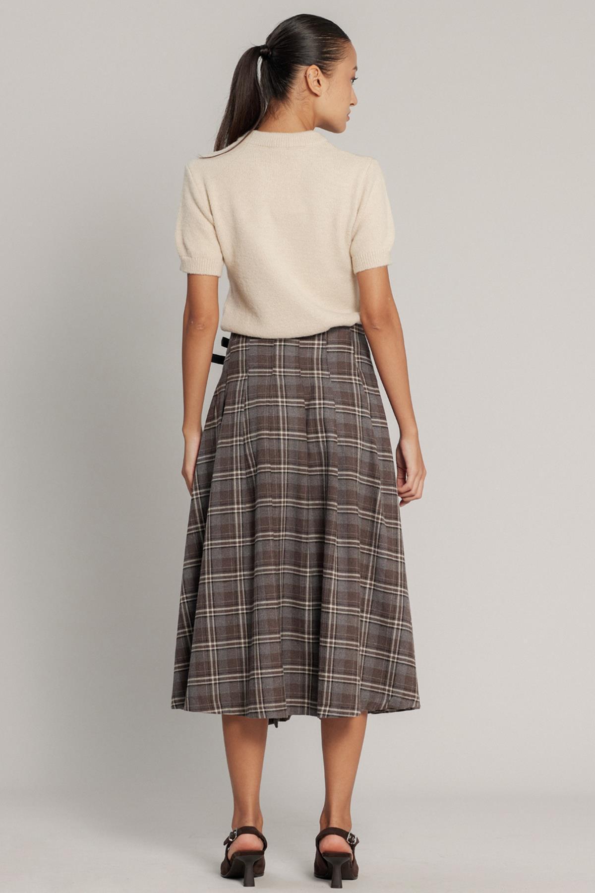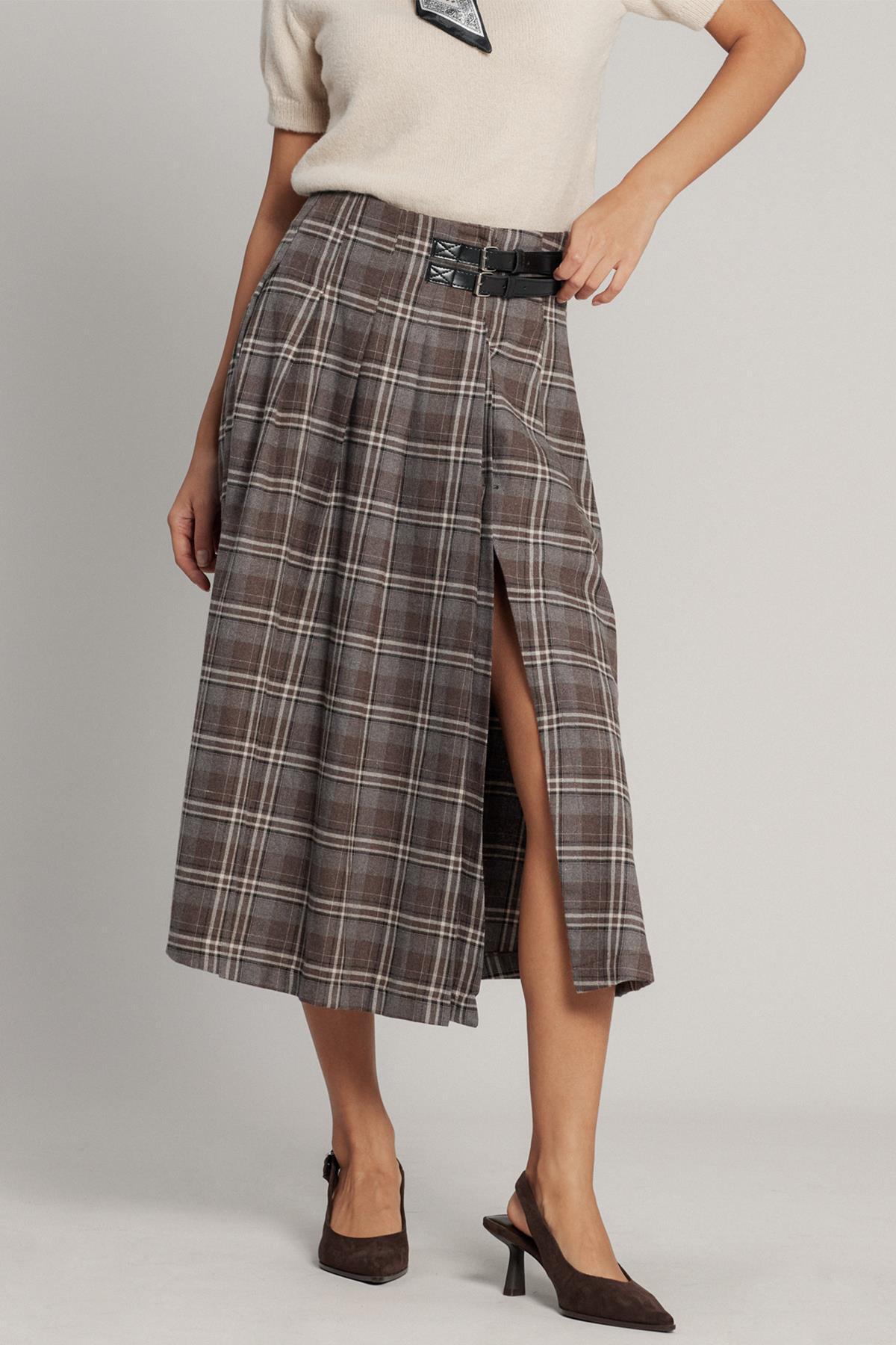 Kemer Detaylı Yırtmaçlı Kloş Ekose Etek A.KAHVE 7057 Kemer Detaylı Yırtmaçlı Kloş Ekose Etek A.KAHVE 7057 L