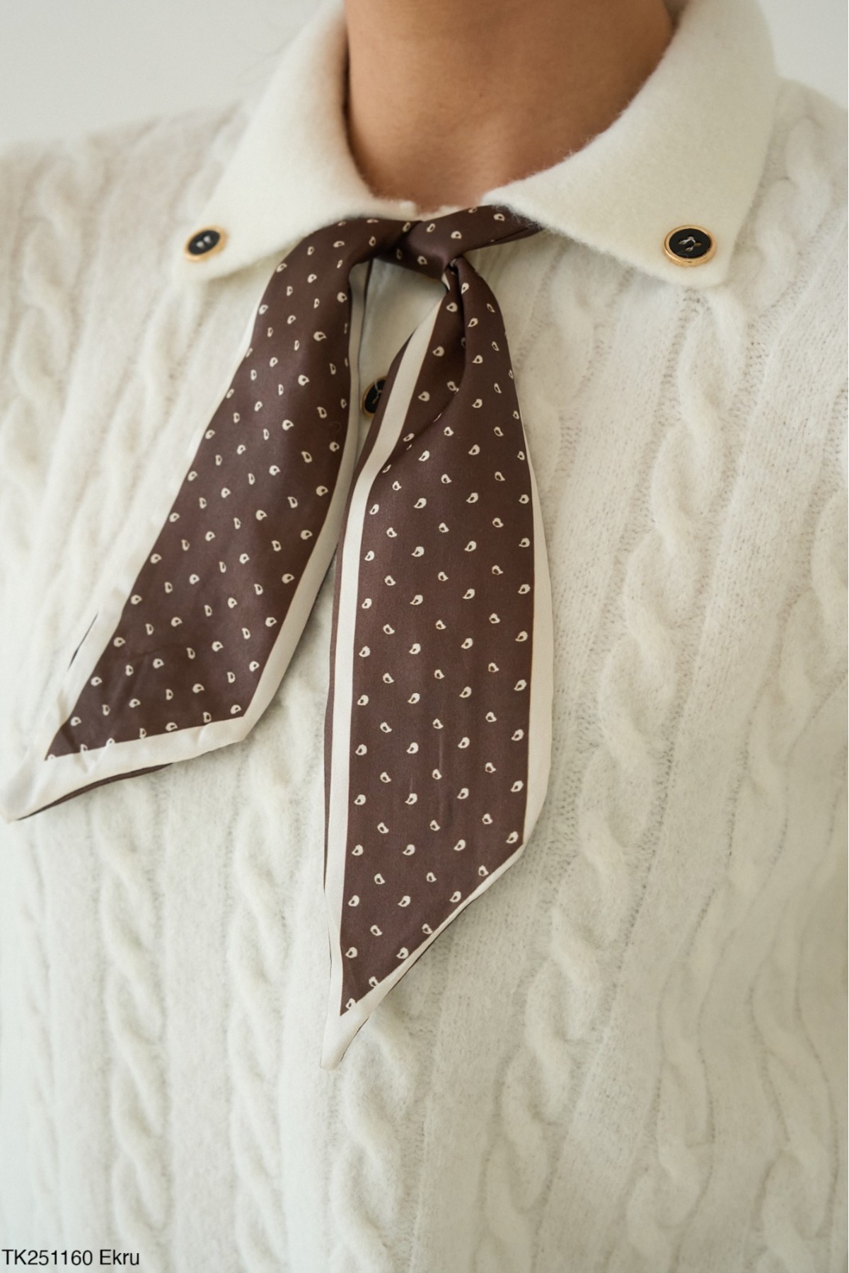 Kadın Fularlı Polo Yaka Uzun Kol Saç Örgü Triko Kazak Kadın Fularlı Polo Yaka Uzun Kol Saç Örgü Triko Kazak TK251160 Standart