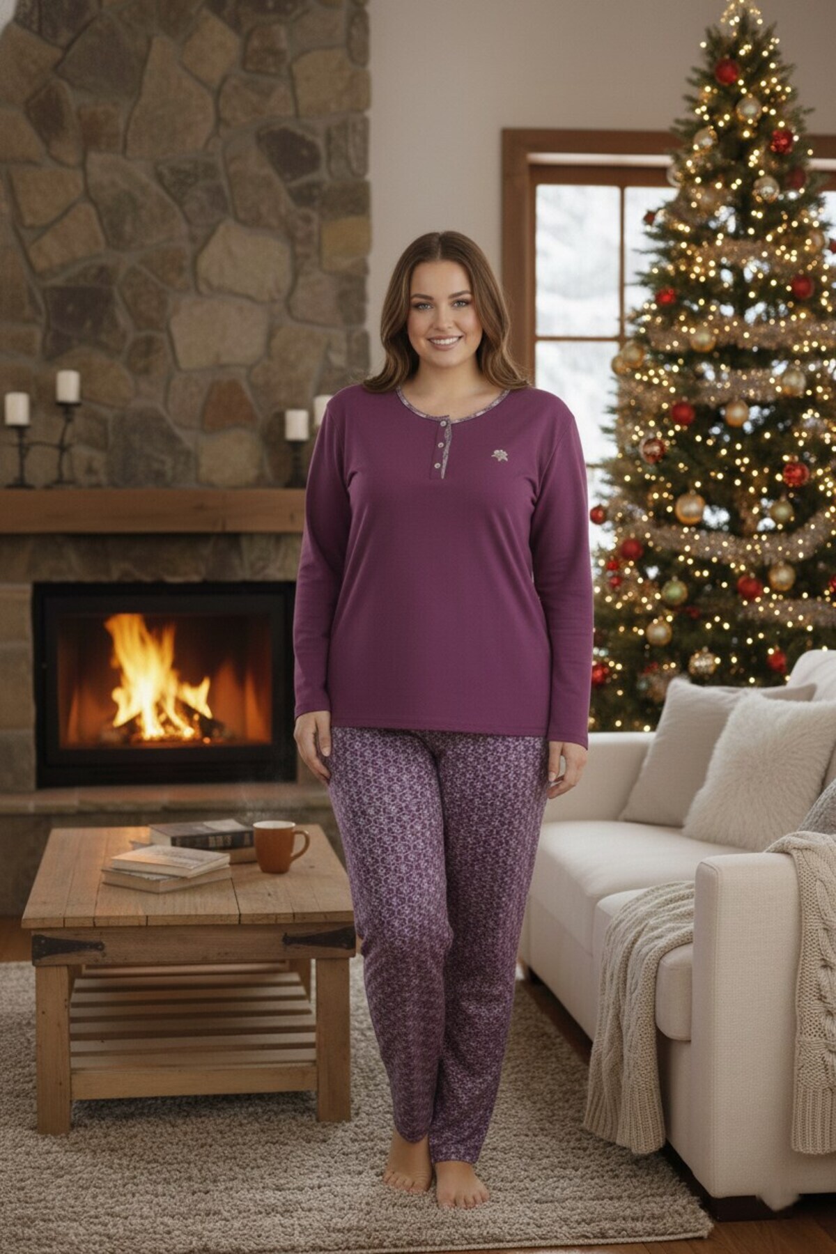 Kadın Etnik Desen 3 Düğme Pamuk Likra Mevsimlik Uzun Kol Pijama Takımı Kadın Etnik Desen 3 Düğme Pamuk Likra Mevsimlik Uzun Kol Pijama Takımı PRA-13386193-729072 4XL