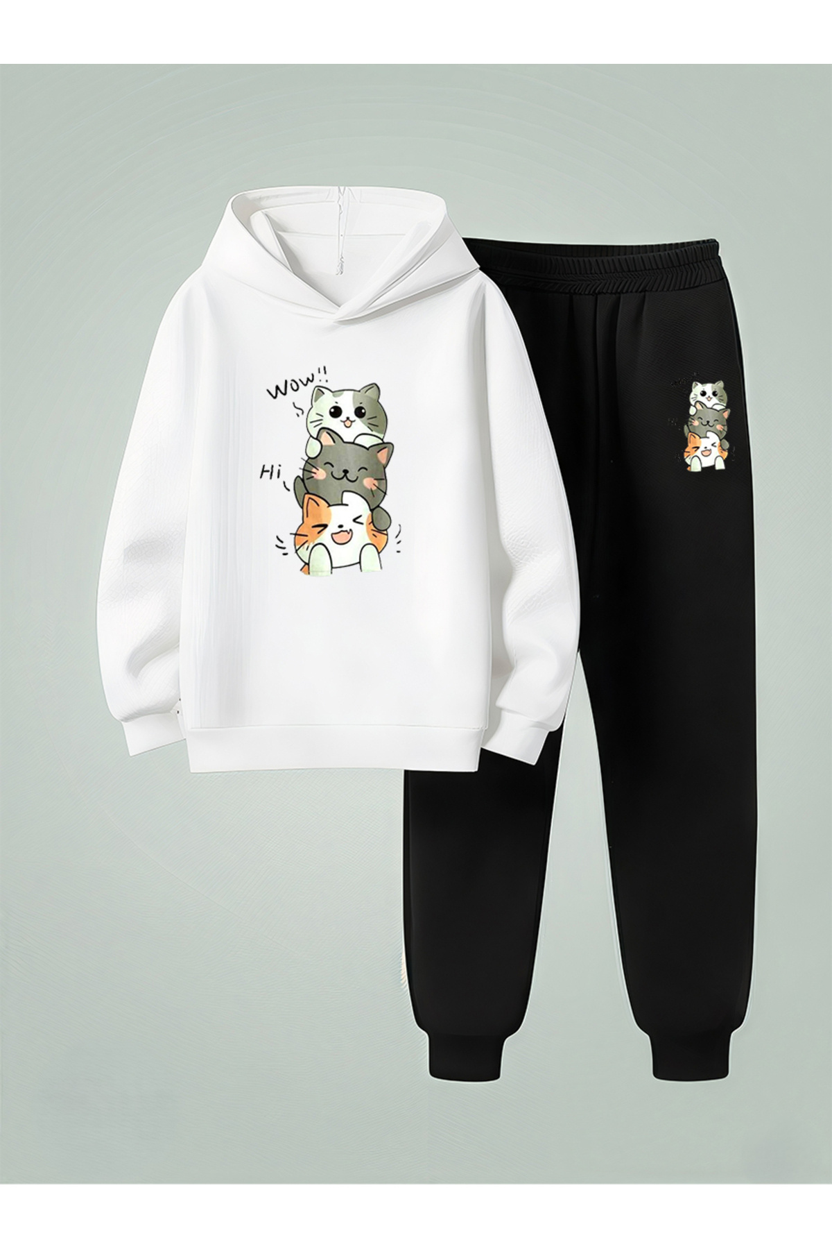 Unısex Sweatshirt - Eşofman Takım Çocuk Kapüşonlu Takım ÜST ÜSTE KEDİLER Baskılı 3 İplik Şardonlu Unısex Sweatshirt - Eşofman Takım Çocuk Kapüşonlu Takım ÜST ÜSTE KEDİLER Baskılı 3 İplik Şardonlu üstüstekediler- 13-14 Yaş