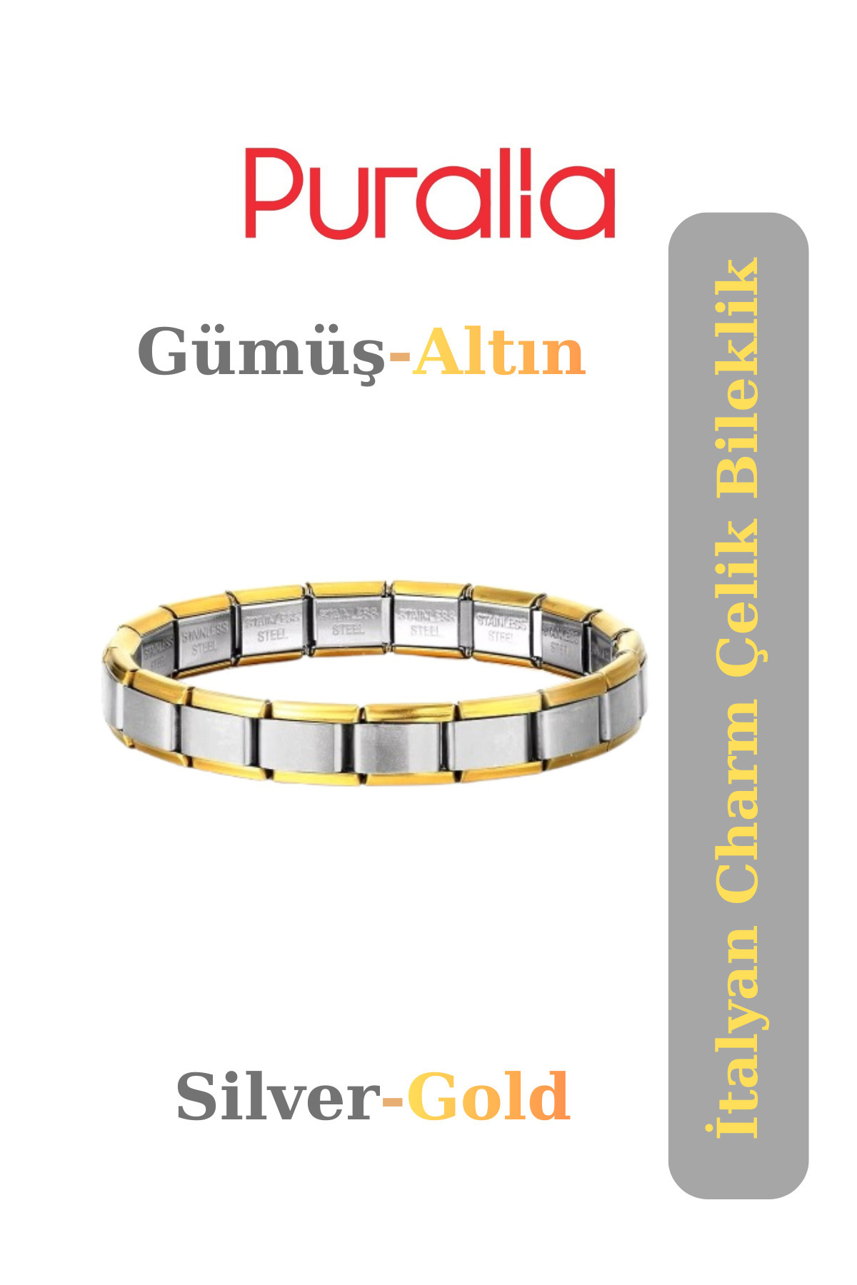İtalyan Charm Çelik Bileklik Yazısız - Gümüş-Altın (Silver-Gold) İtalyan Charm Çelik Bileklik Yazısız - Gümüş-Altın (Silver-Gold) MSA001 M