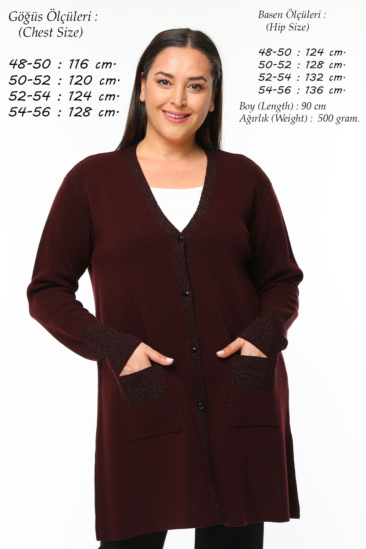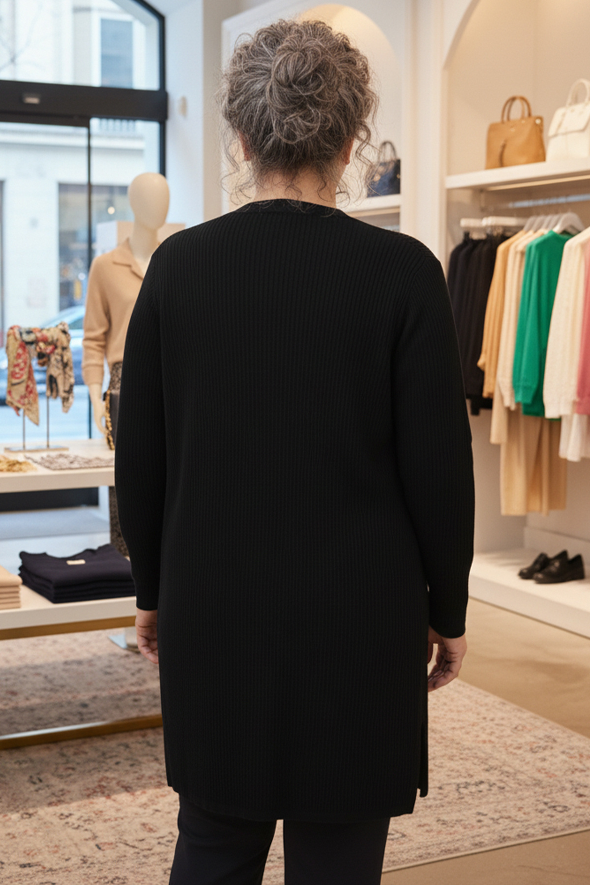 Kadın Triko Mevsimlik Fitilli Büyük Beden Likralı Uzun Siyah Anne Hırka Kadın Triko Mevsimlik Fitilli Büyük Beden Likralı Uzun Siyah Anne Hırka 7643 56-58