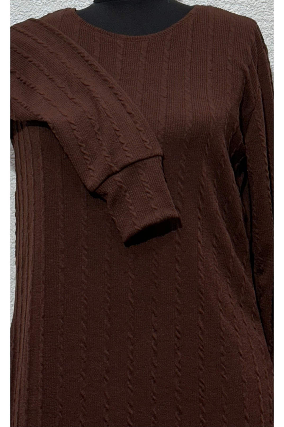 Kahverengi örme triko büyük beden tunik Kahverengi örme triko büyük beden tunik 0011 5XL