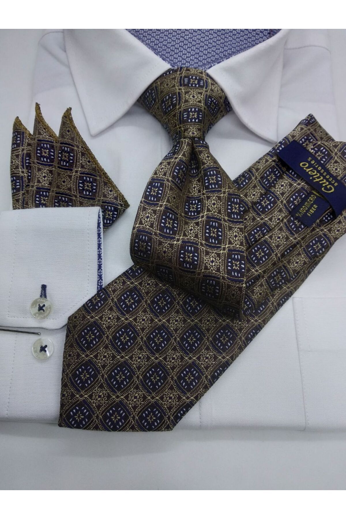 Lacivert Desenli Mendilli Klasik Kravat Lacivert Desenli Mendilli Klasik Kravat KK7-685 تک سایز