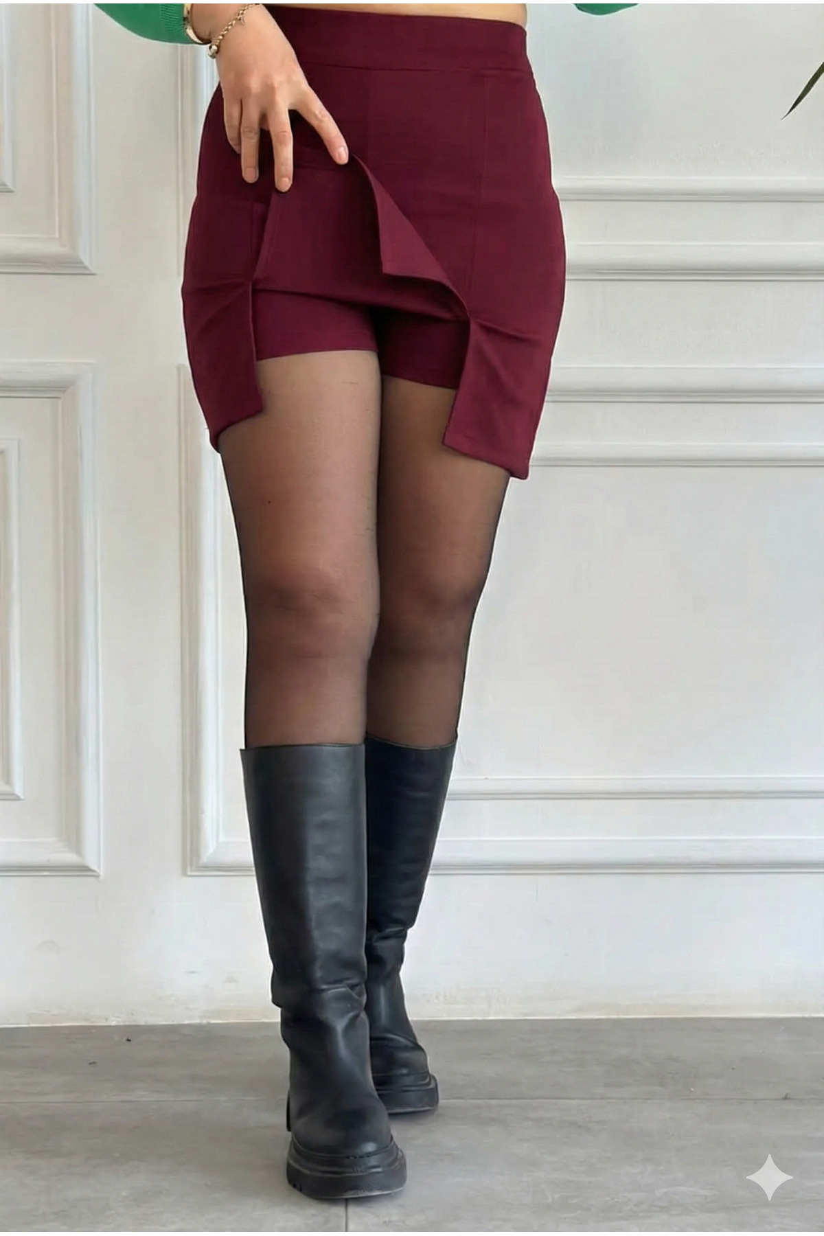 Çelik Kumaş Ön Arka Etek Görünümlü Likralı Şort Etek Bordo Çelik Kumaş Ön Arka Etek Görünümlü Likralı Şort Etek Bordo TYCCE719E9CECE0BB11861F00 2XL