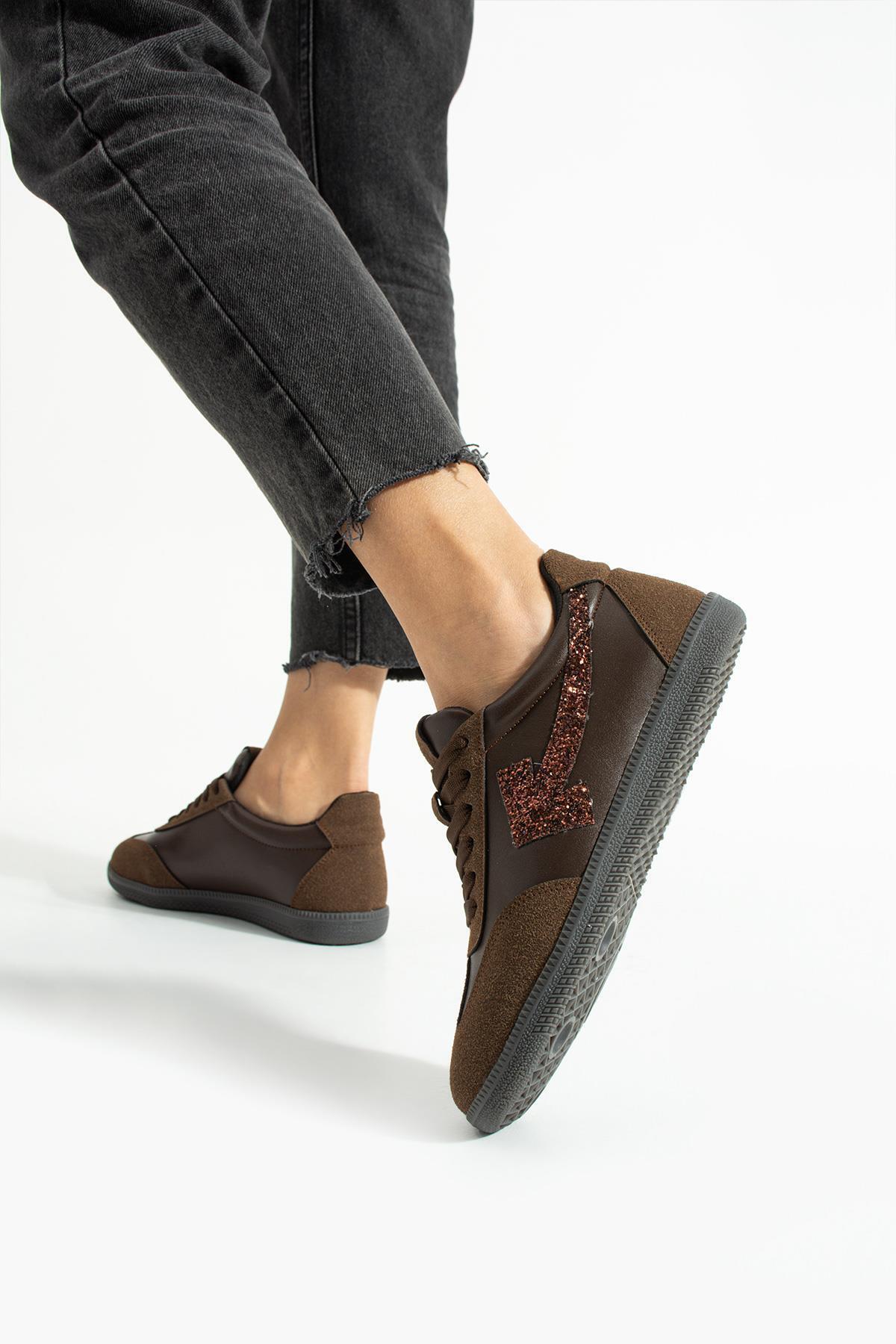 Kadın Sneaker Bağcıklı Ok Detaylı Spor Ayakkabı Orix - Kahverengi Kadın Sneaker Bağcıklı Ok Detaylı Spor Ayakkabı Orix - Kahverengi M3245 40