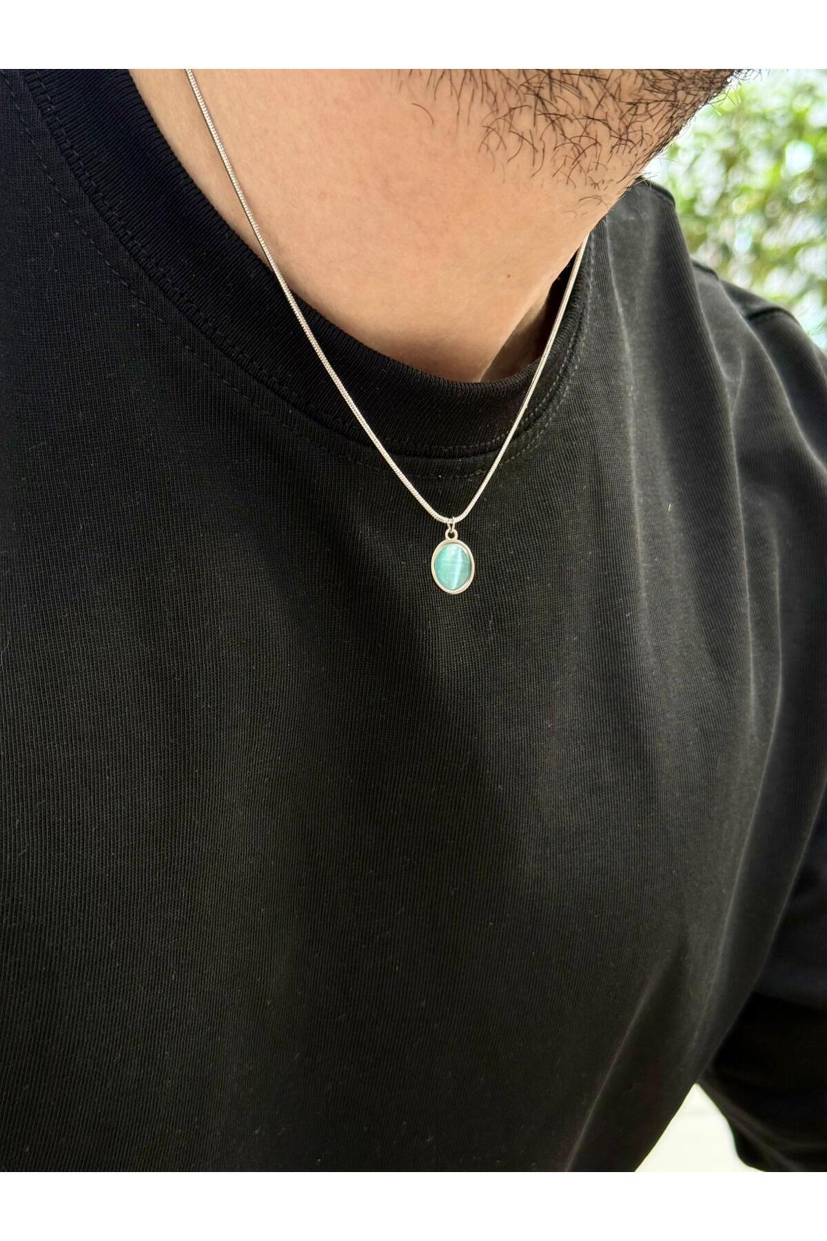 Haleth Kedi Gözü Doğal Taş Detaylı, Gümüş Renk Snake Zincirli Erkek Paslanmaz Çelik Kolye Haleth Kedi Gözü Doğal Taş Detaylı, Gümüş Renk Snake Zincirli Erkek Paslanmaz Çelik Kolye ACEK22041 45 cm
