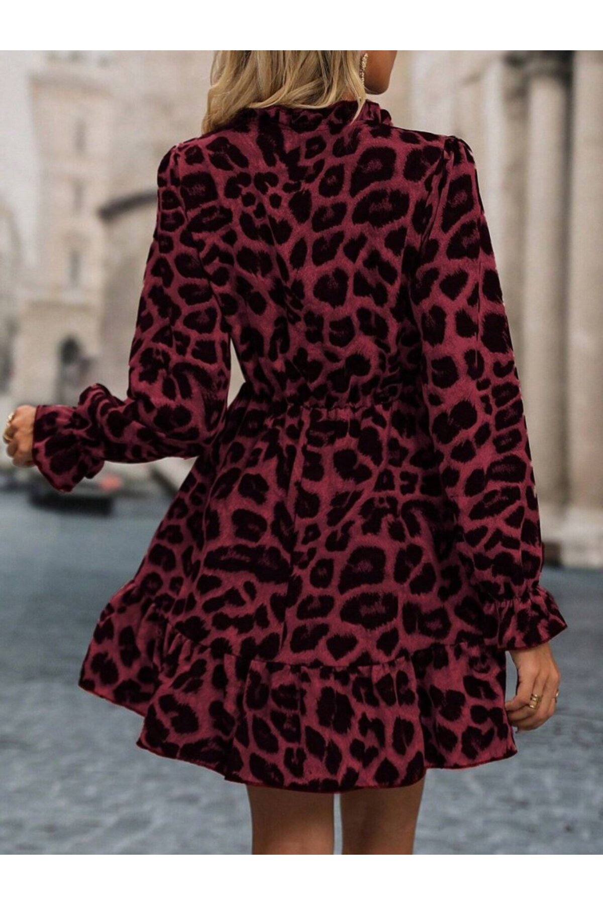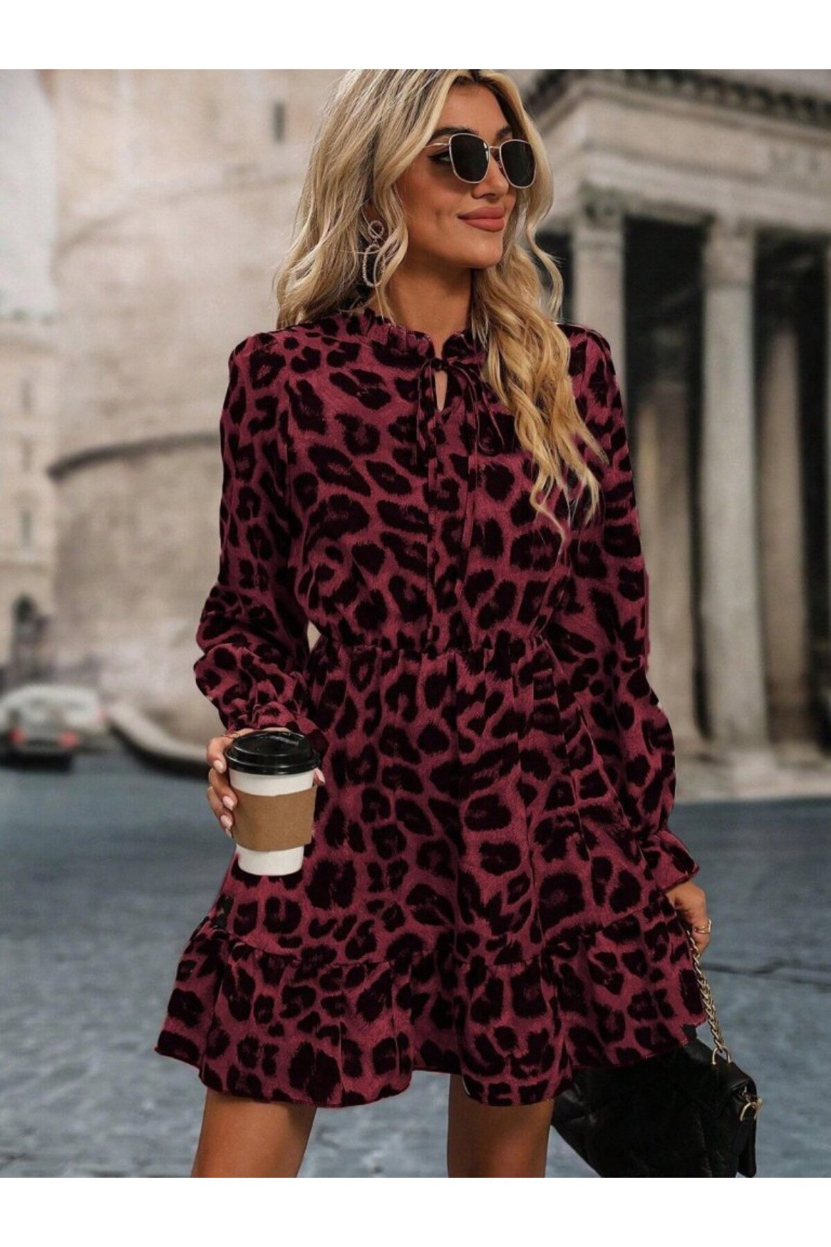 Kadın Uzun Kollu Yakadan Bağcıklı Modal Leopar Desenli Mini Elbise Kadın Uzun Kollu Yakadan Bağcıklı Modal Leopar Desenli Mini Elbise ECR68e4ba578e911 2XL-3XL