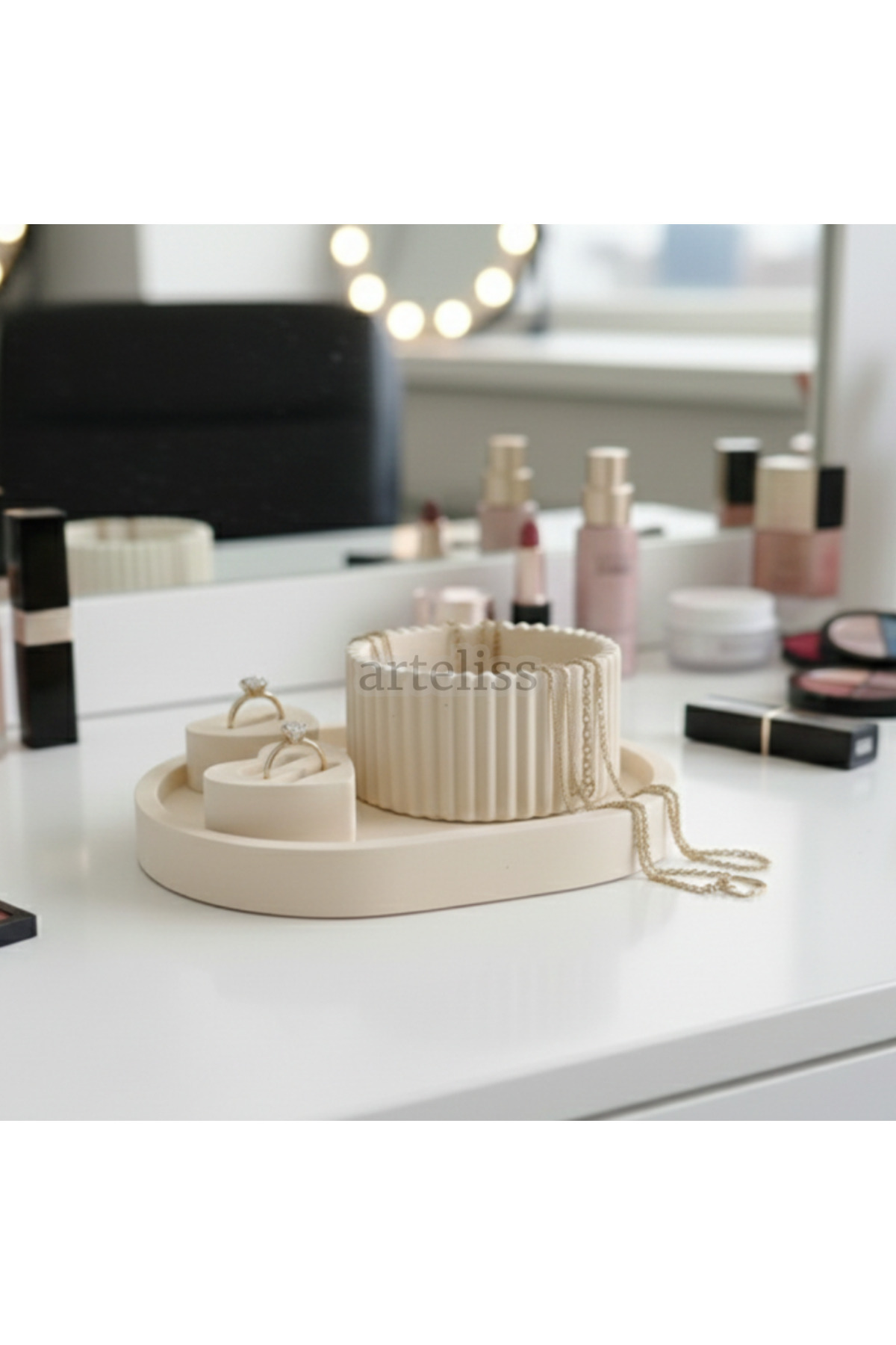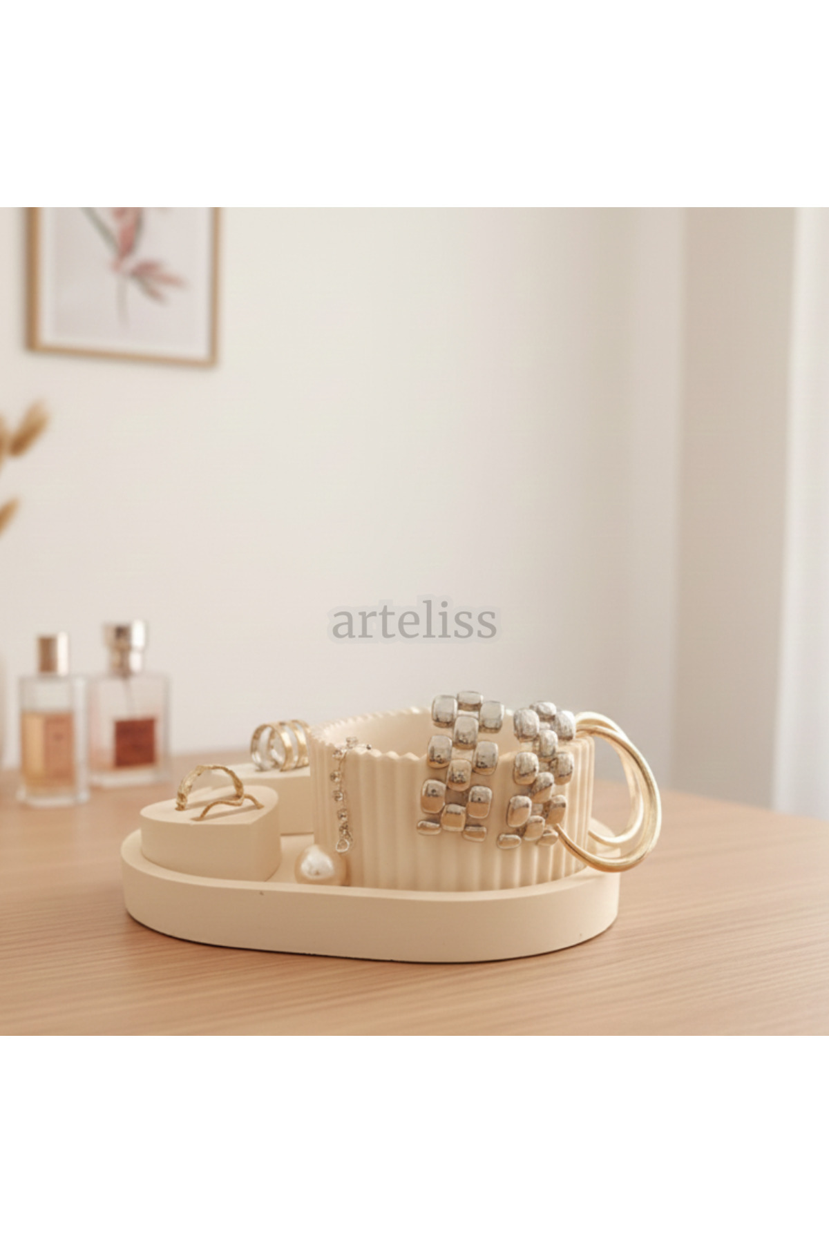 Dekoratif Bej Üçlü Takı Obje Düzenleyici Set | Modern Minimalist Yüzük Kolye Küpe Düzenleyici Dekoratif Bej Üçlü Takı Obje Düzenleyici Set | Modern Minimalist Yüzük Kolye Küpe Düzenleyici ARTLSS0152 تک سایز