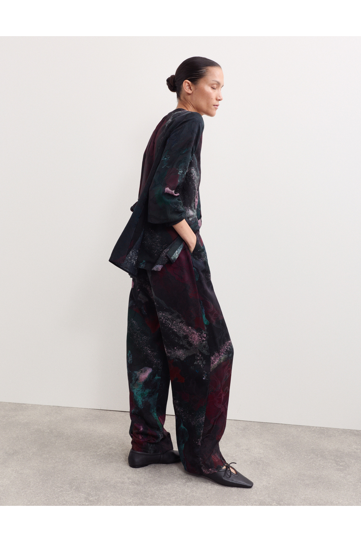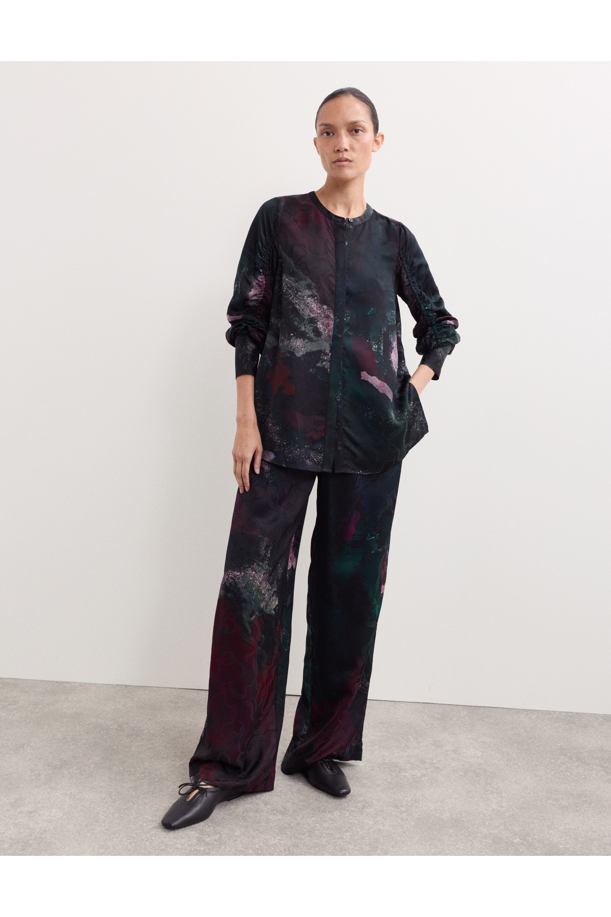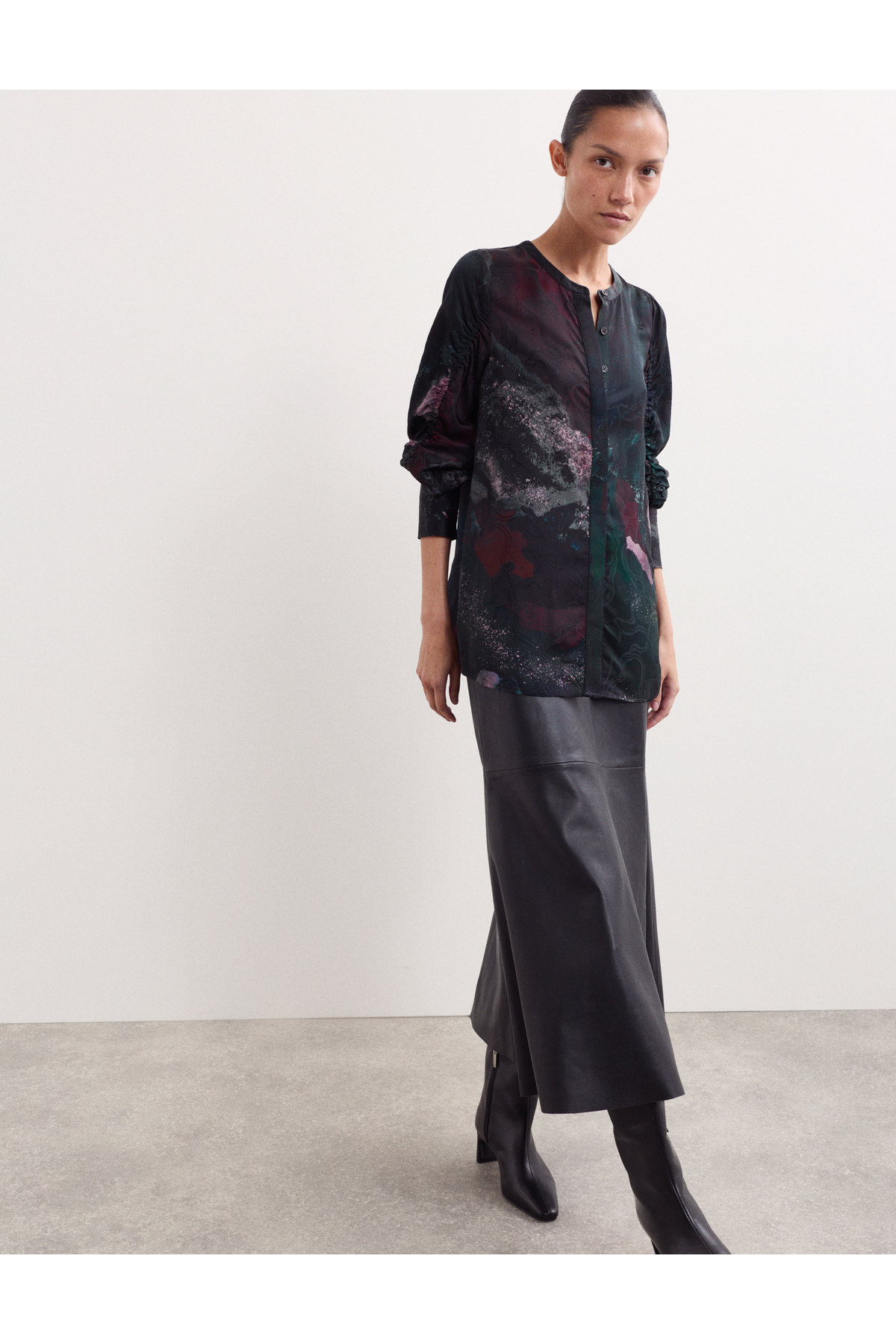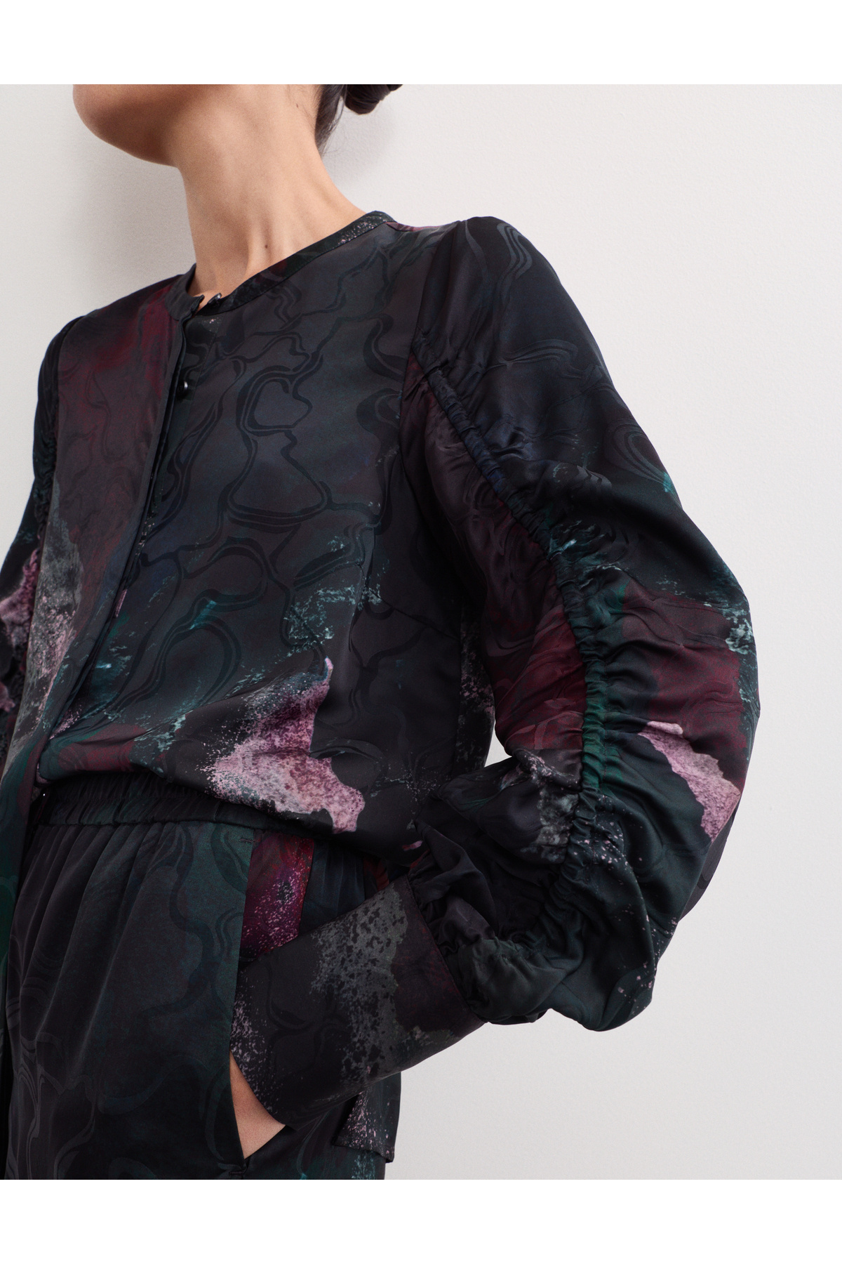 Desenli Büzgülü Bluz Desenli Büzgülü Bluz T97006520J 48
