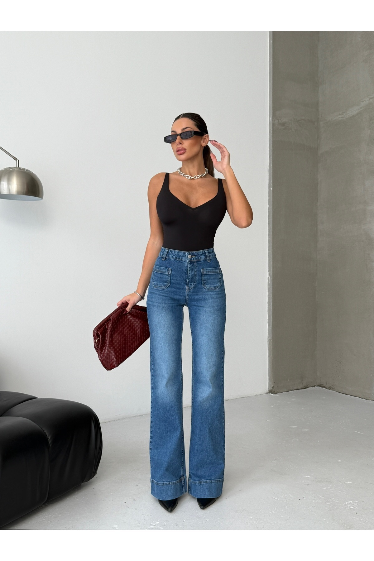 Yüksek Bel Yıkamalı Gri İspanyol Paça Denim Kadın Pantolon Yüksek Bel Yıkamalı Gri İspanyol Paça Denim Kadın Pantolon 1465-3 XXS/P