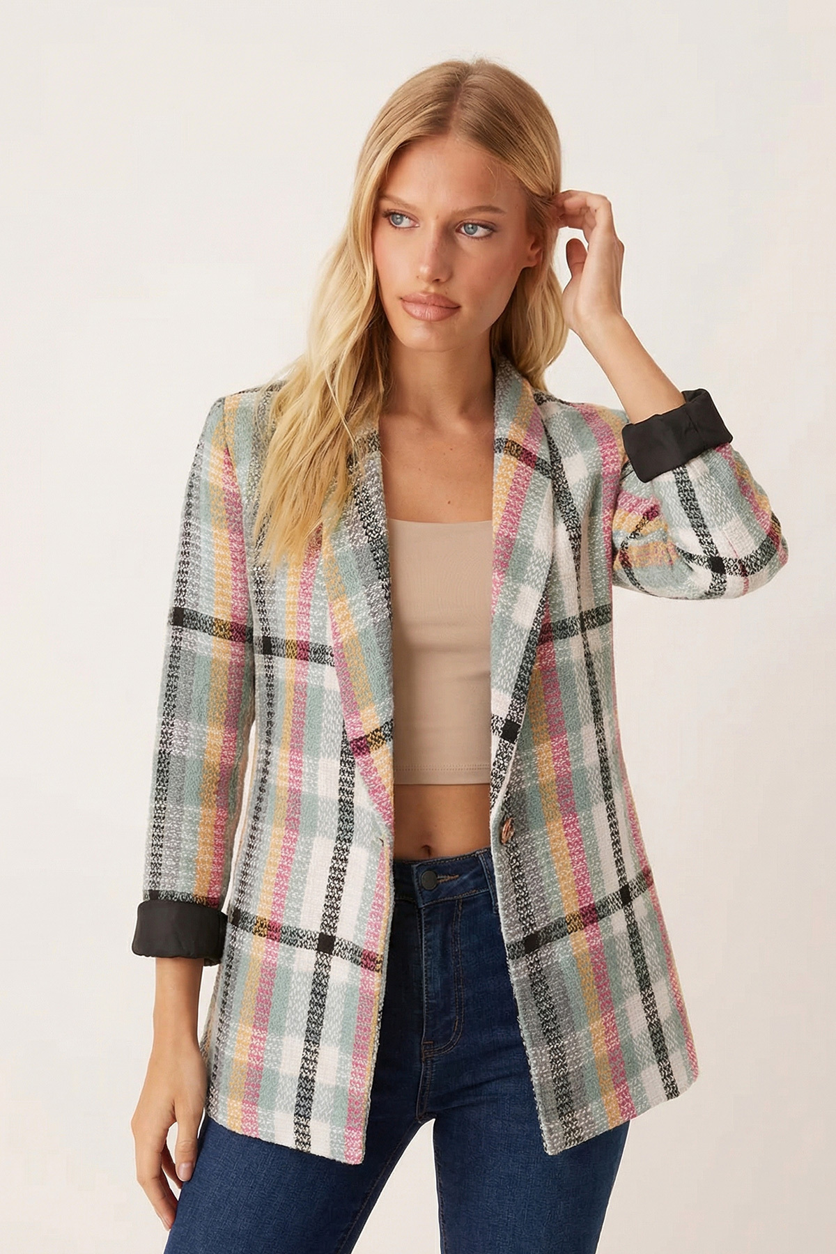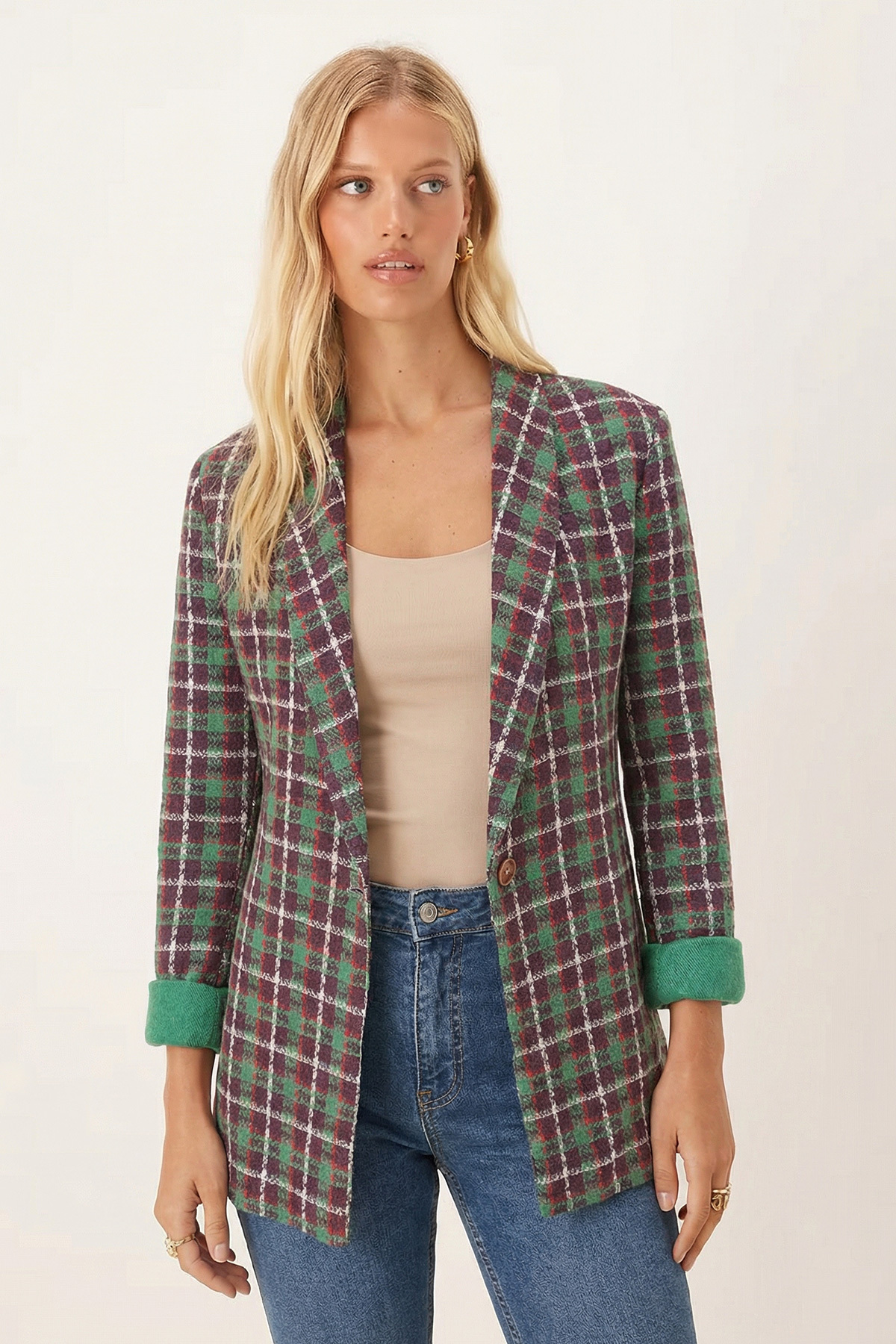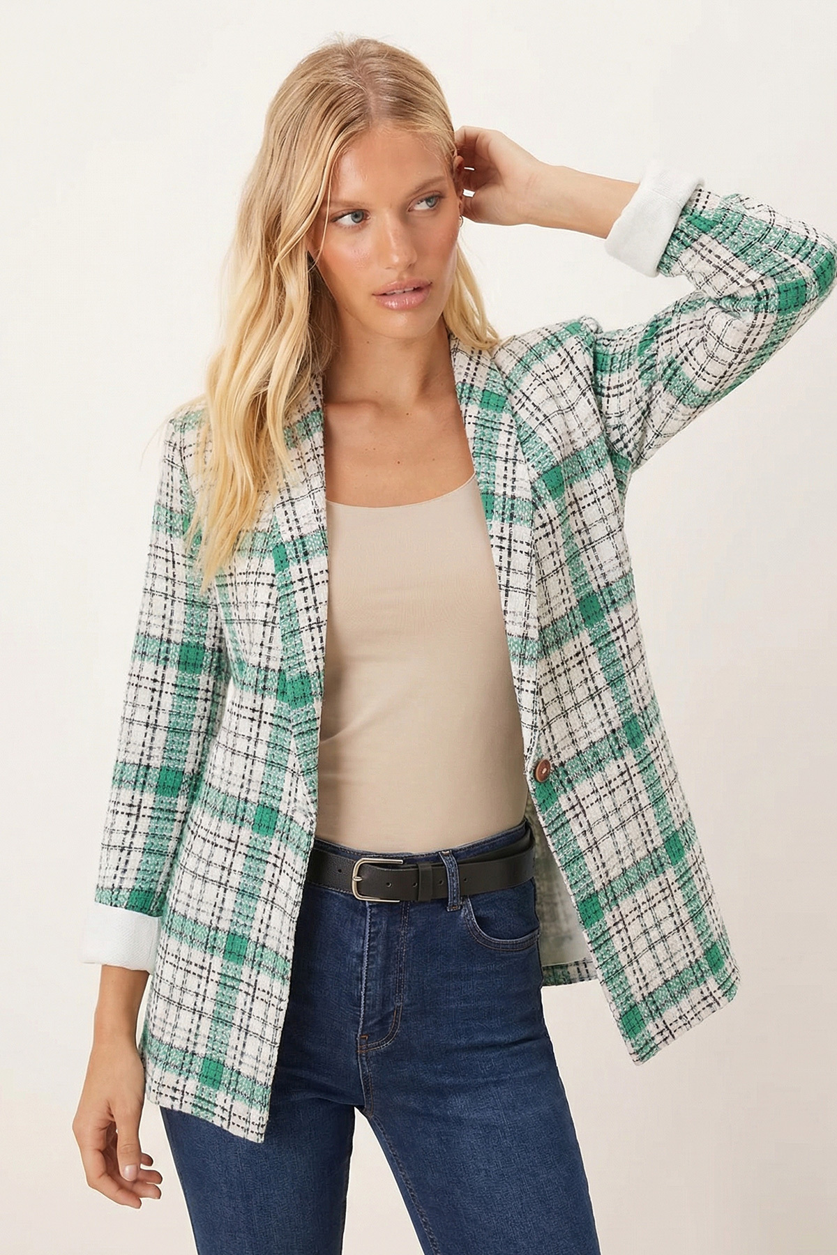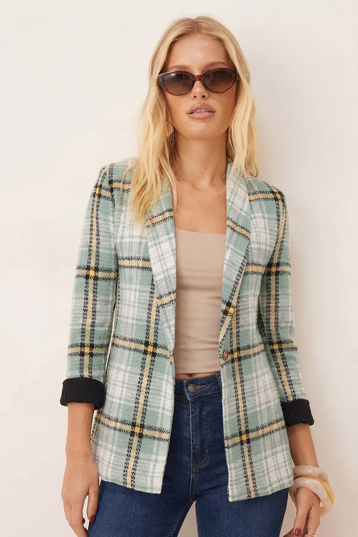 Kadın Çağla Yeşili Şal Yaka Kolları Garnili Tek Düğme Ceket ARM-26K001087 Kadın Çağla Yeşili Şal Yaka Kolları Garnili Tek Düğme Ceket ARM-26K001087 XL