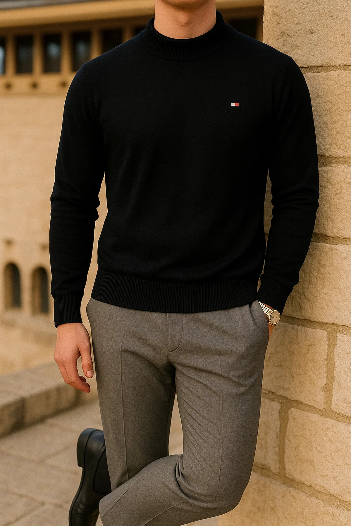 Erkek Slim Fit Yarım Balıkçı Yaka Siyah Kazak Erkek Slim Fit Yarım Balıkçı Yaka Siyah Kazak Ayna-6-E0204-09 XL