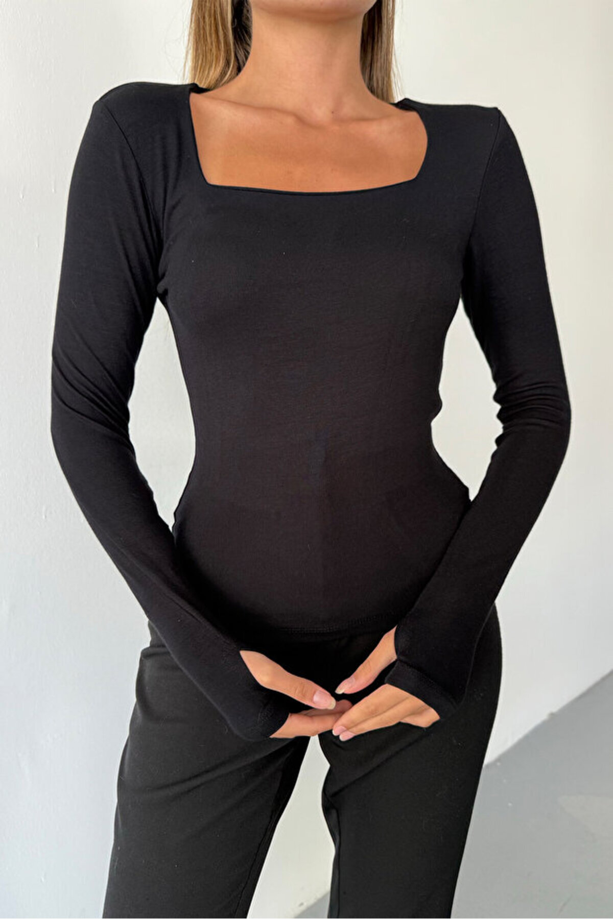 Kare Yaka Parmak Geçirmeli Body Kare Yaka Parmak Geçirmeli Body RMN-TEKS0109 L