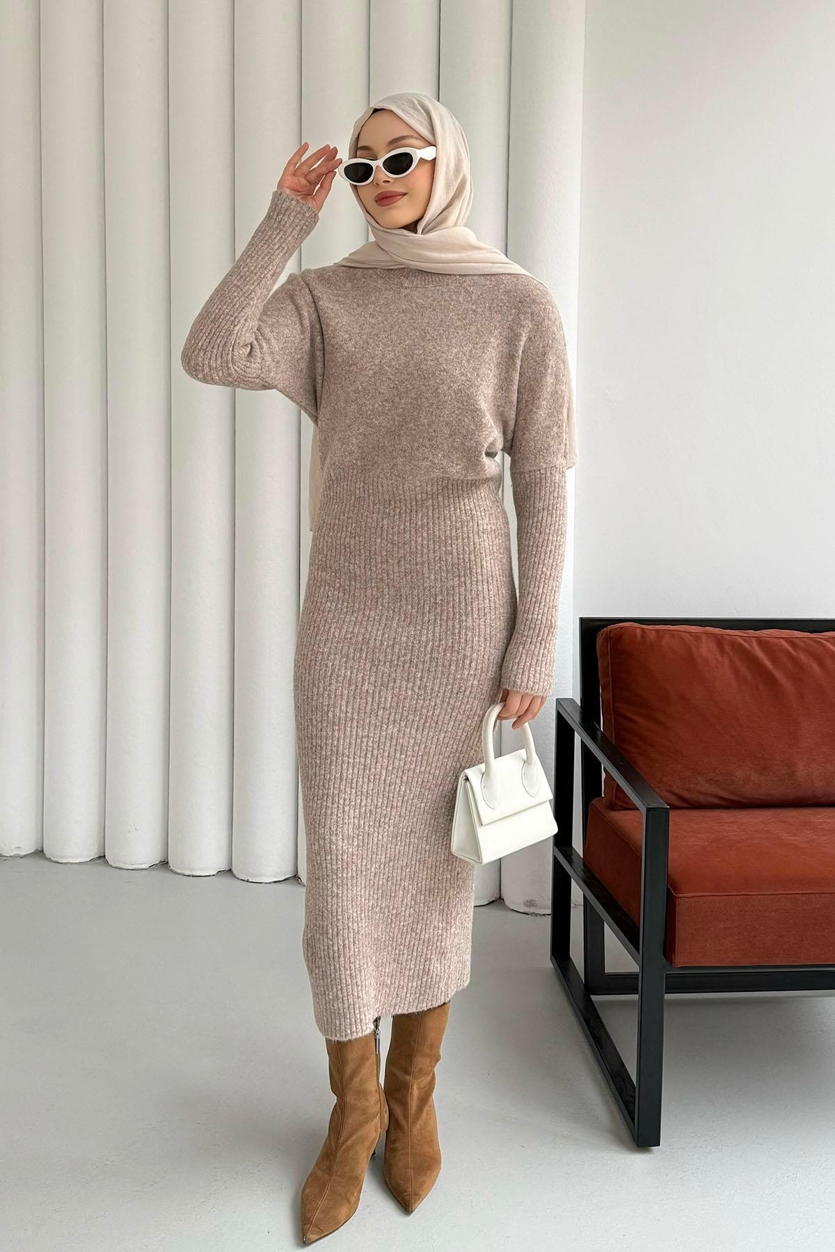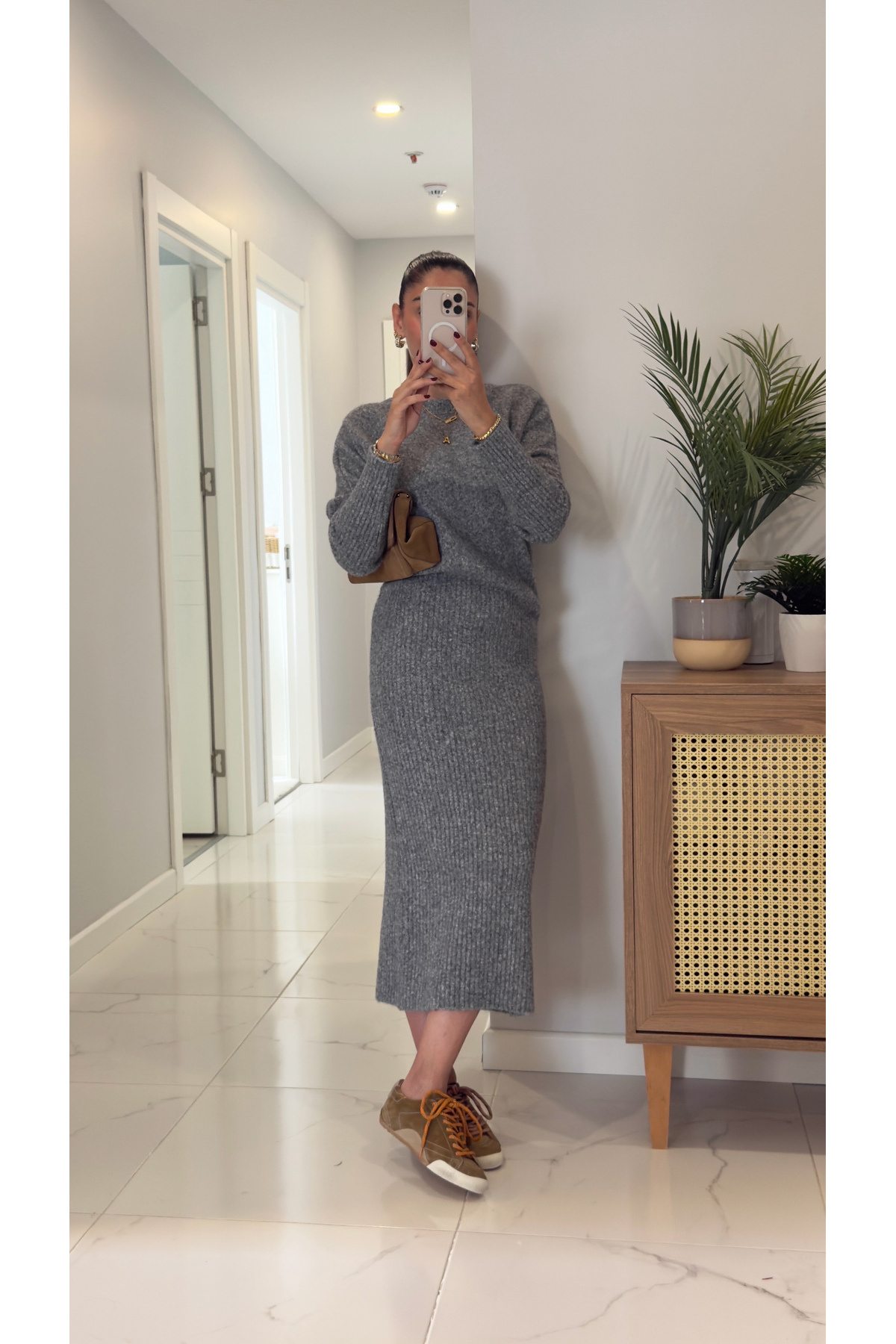 Bisiklet Yaka Yumuşak Dokulu Triko Tesettür Elbise-FÜME Bisiklet Yaka Yumuşak Dokulu Triko Tesettür Elbise-FÜME 90260 Standart