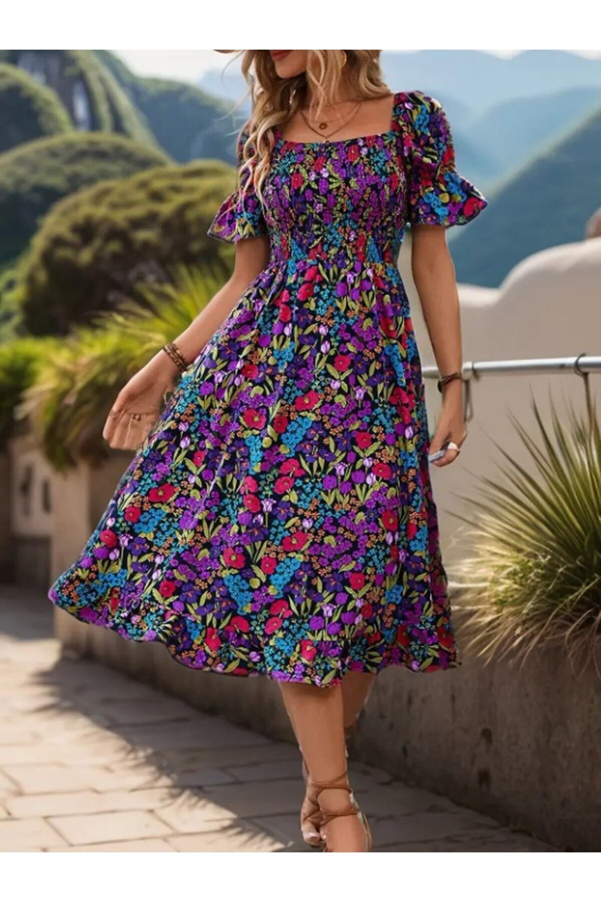 GACHA Kadın Kısa Kollu Kare Yakalı Beli Lastikli çiçek Desenli Mini Süprem Elbise GACHA Kadın Kısa Kollu Kare Yakalı Beli Lastikli çiçek Desenli Mini Süprem Elbise MDE-158893 L/XL