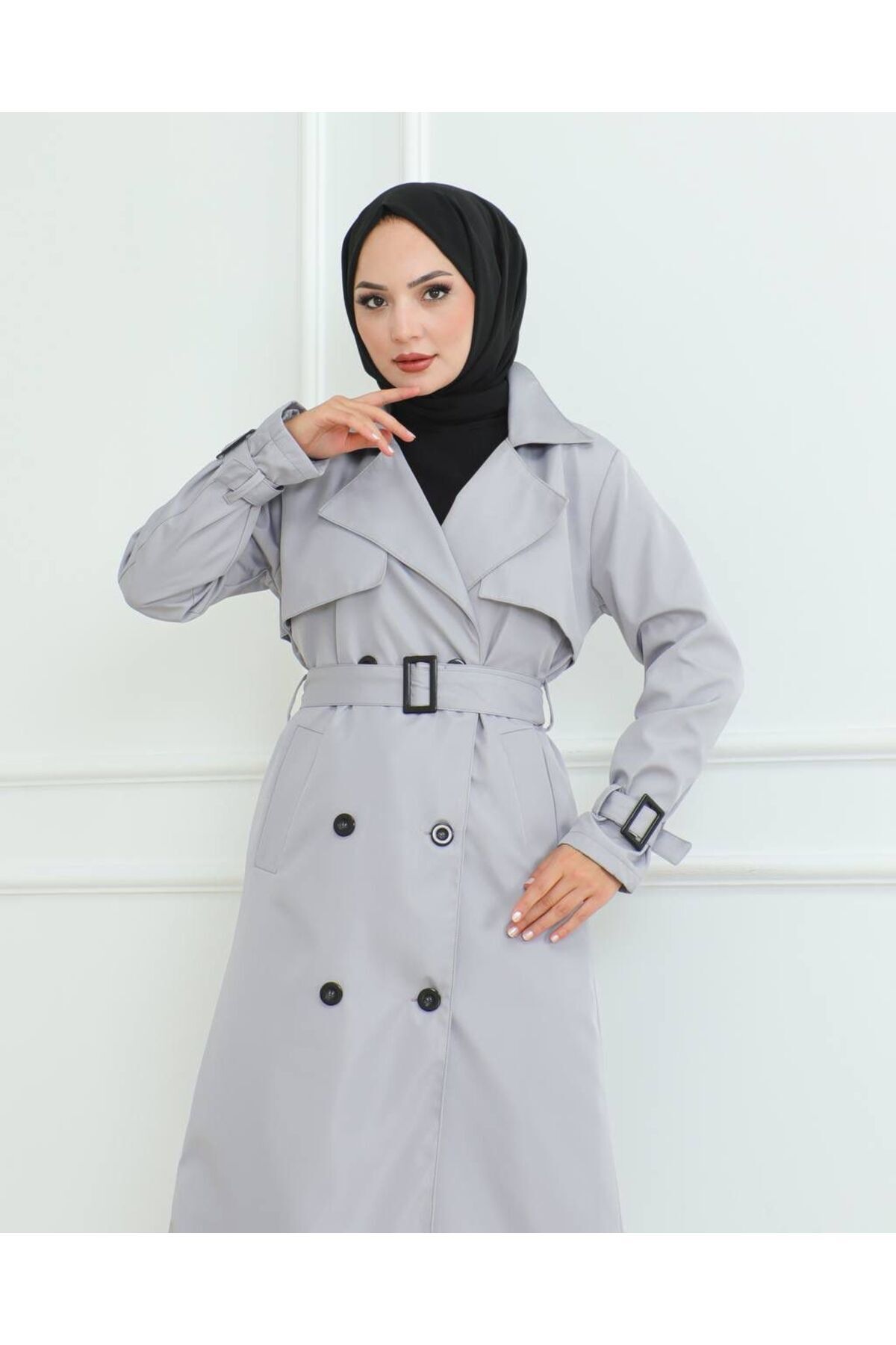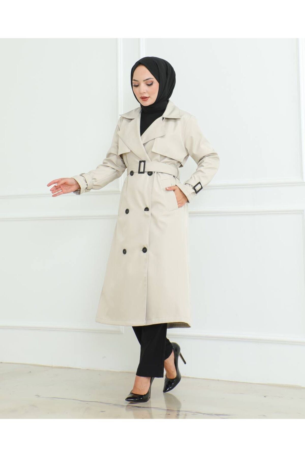 Kuşak Detaylı Süet Trençkot Kap-Lacivert Kuşak Detaylı Süet Trençkot Kap-Lacivert vive00095 Standart