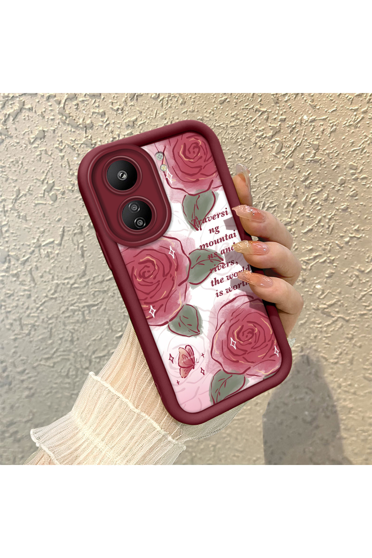 Xiaomi Redmi 13C Uyumlu Güzel Gül Desenli Bordo Silikon Darbe Koruma Kılıfı Xiaomi Redmi 13C Uyumlu Güzel Gül Desenli Bordo Silikon Darbe Koruma Kılıfı تک سایز