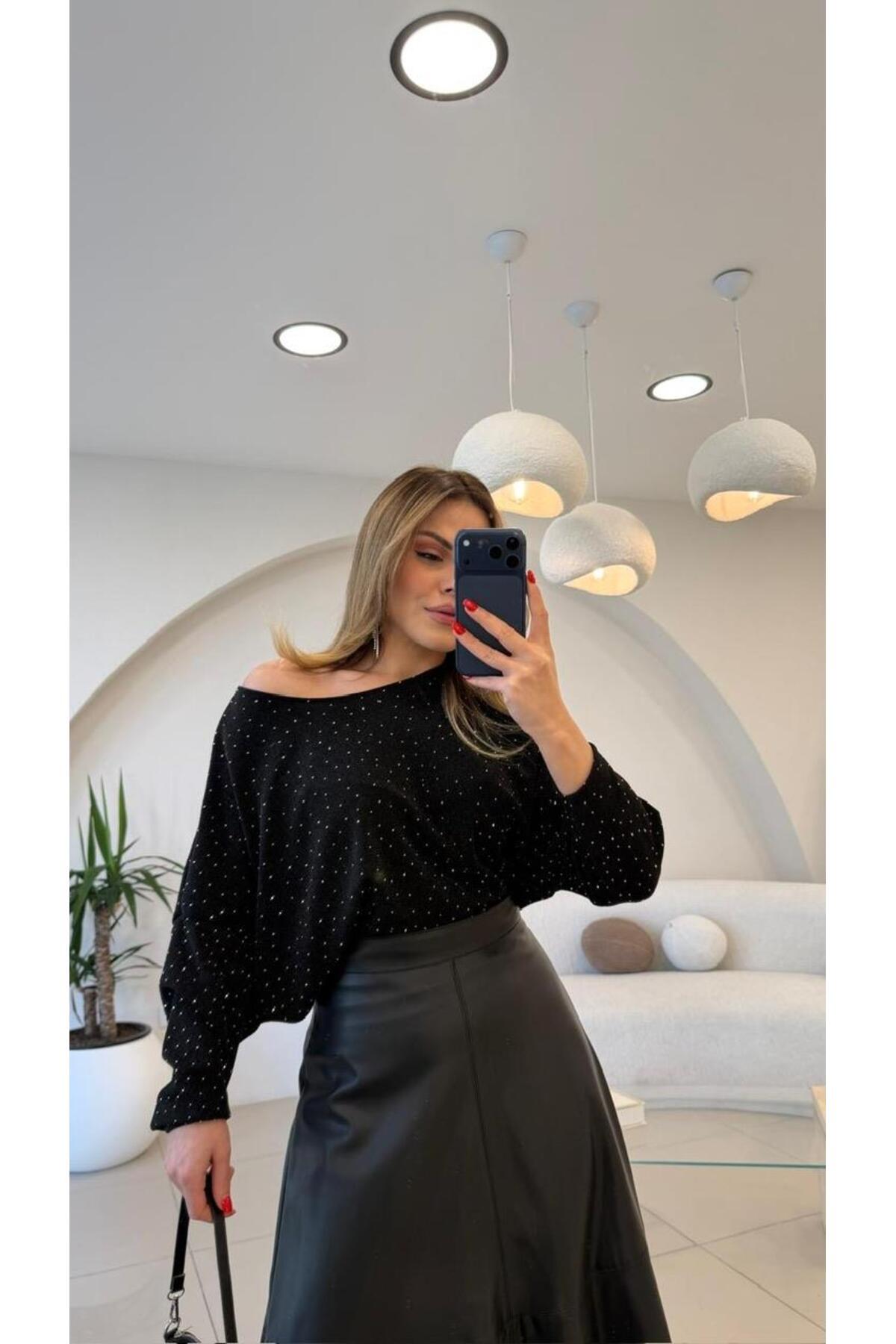 KAYIK YAKA TAŞLI BLUZ KAYIK YAKA TAŞLI BLUZ TXE9AE19353610 L