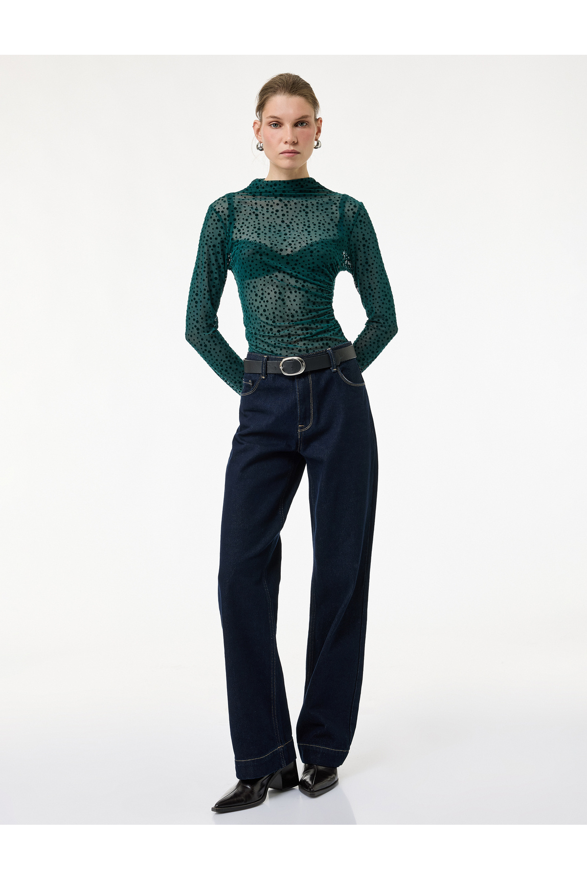Slim Fit Uzun Kollu Geniş Dik Yaka Puantiyeli Tül Bluz Slim Fit Uzun Kollu Geniş Dik Yaka Puantiyeli Tül Bluz 6WAK80389EK XL