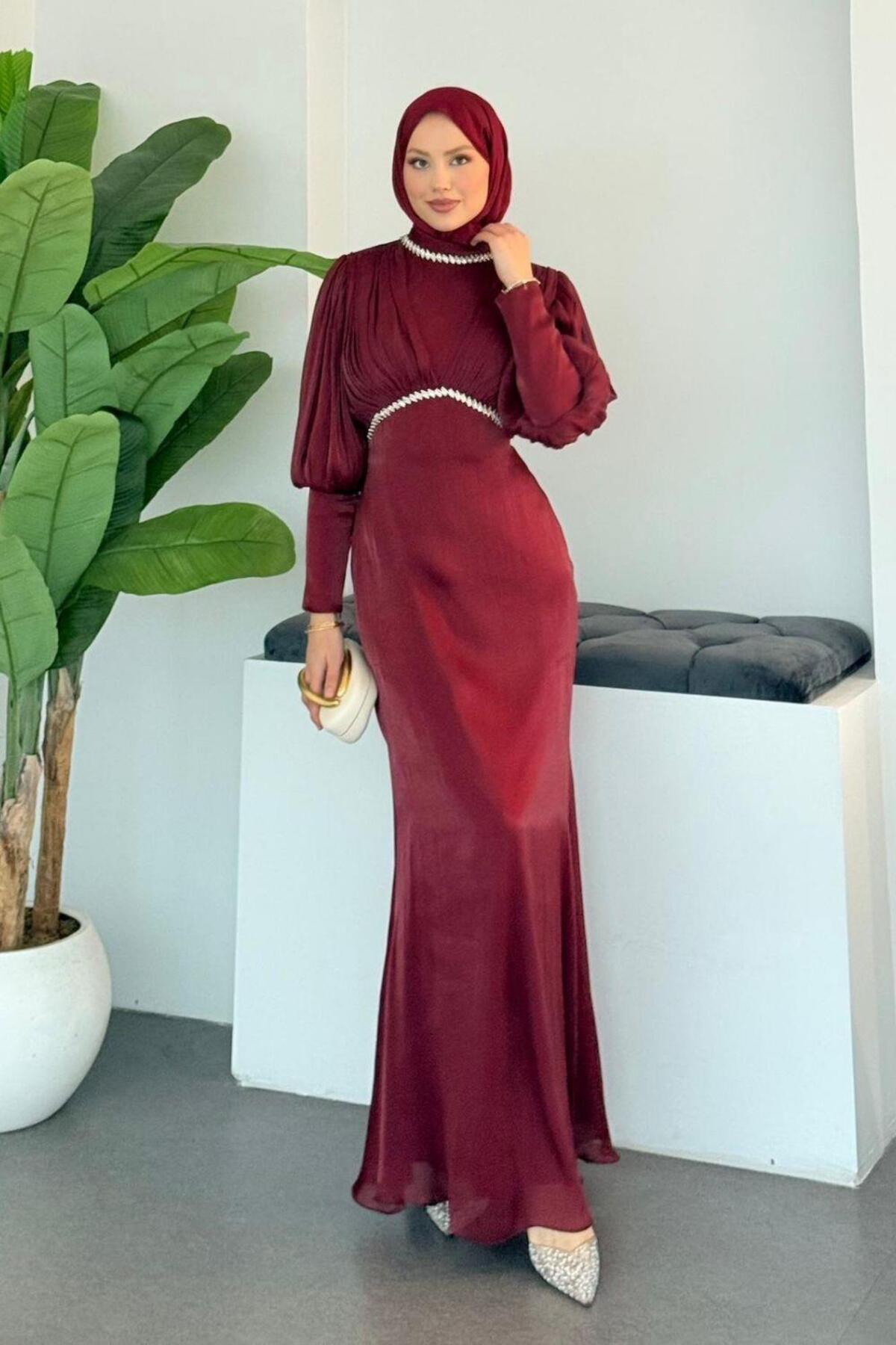 Duygu Bel Yaka Taşlı Abiye Bordo Duygu Bel Yaka Taşlı Abiye Bordo 4849 44