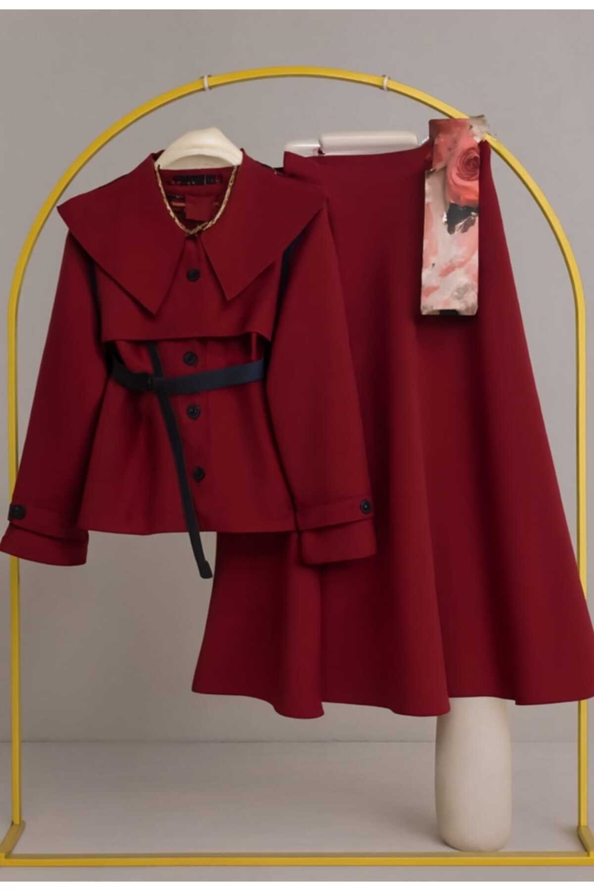 Kadın Omuz Detaylı Kemerli Scuba Etekli Takım Kadın Omuz Detaylı Kemerli Scuba Etekli Takım kmr-54 2XL