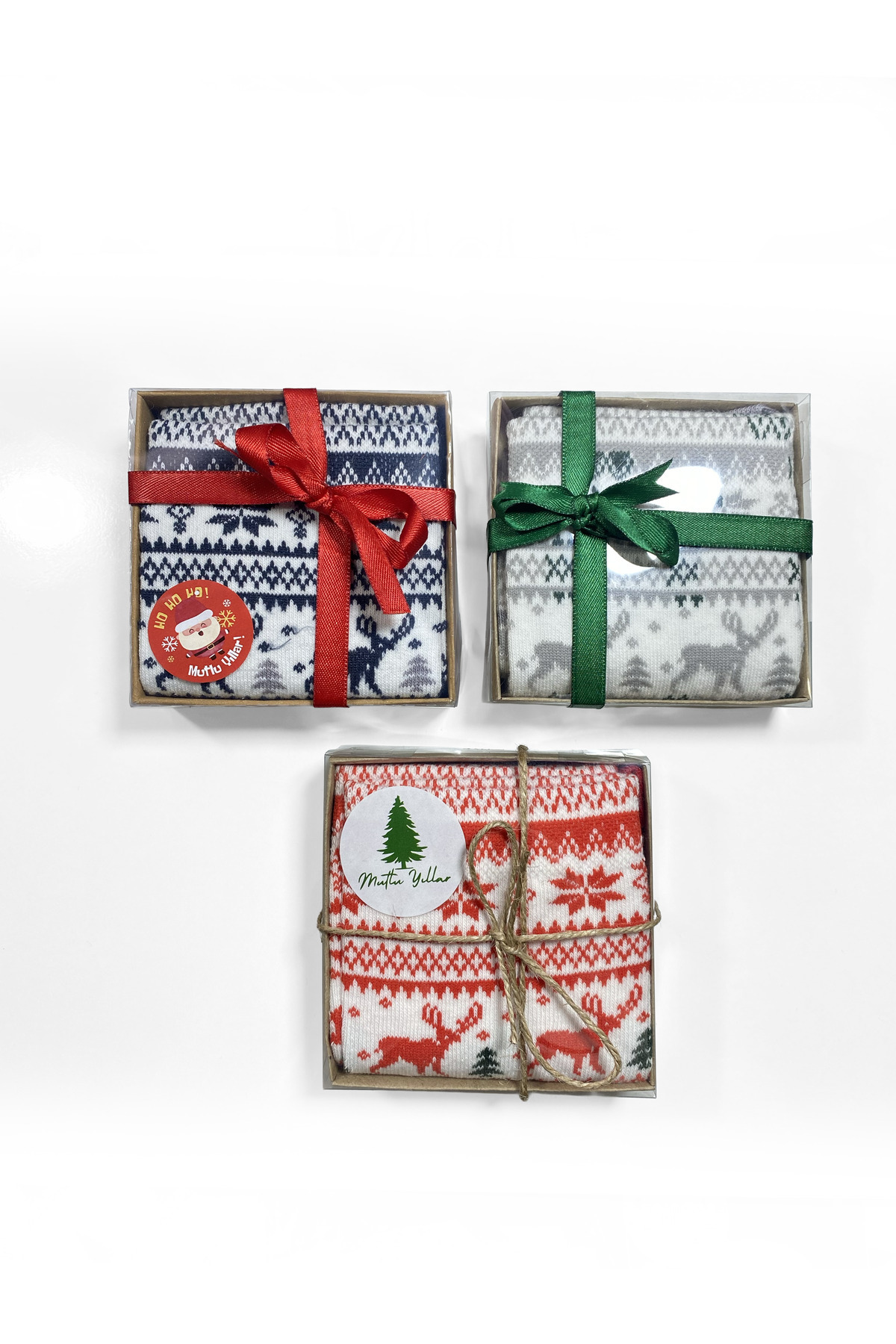 Yılbaşı Geyik Desenli Kraft Kutulu Çorap 3'lü Set Yılbaşı Geyik Desenli Kraft Kutulu Çorap 3'lü Set İN1911 36-44
