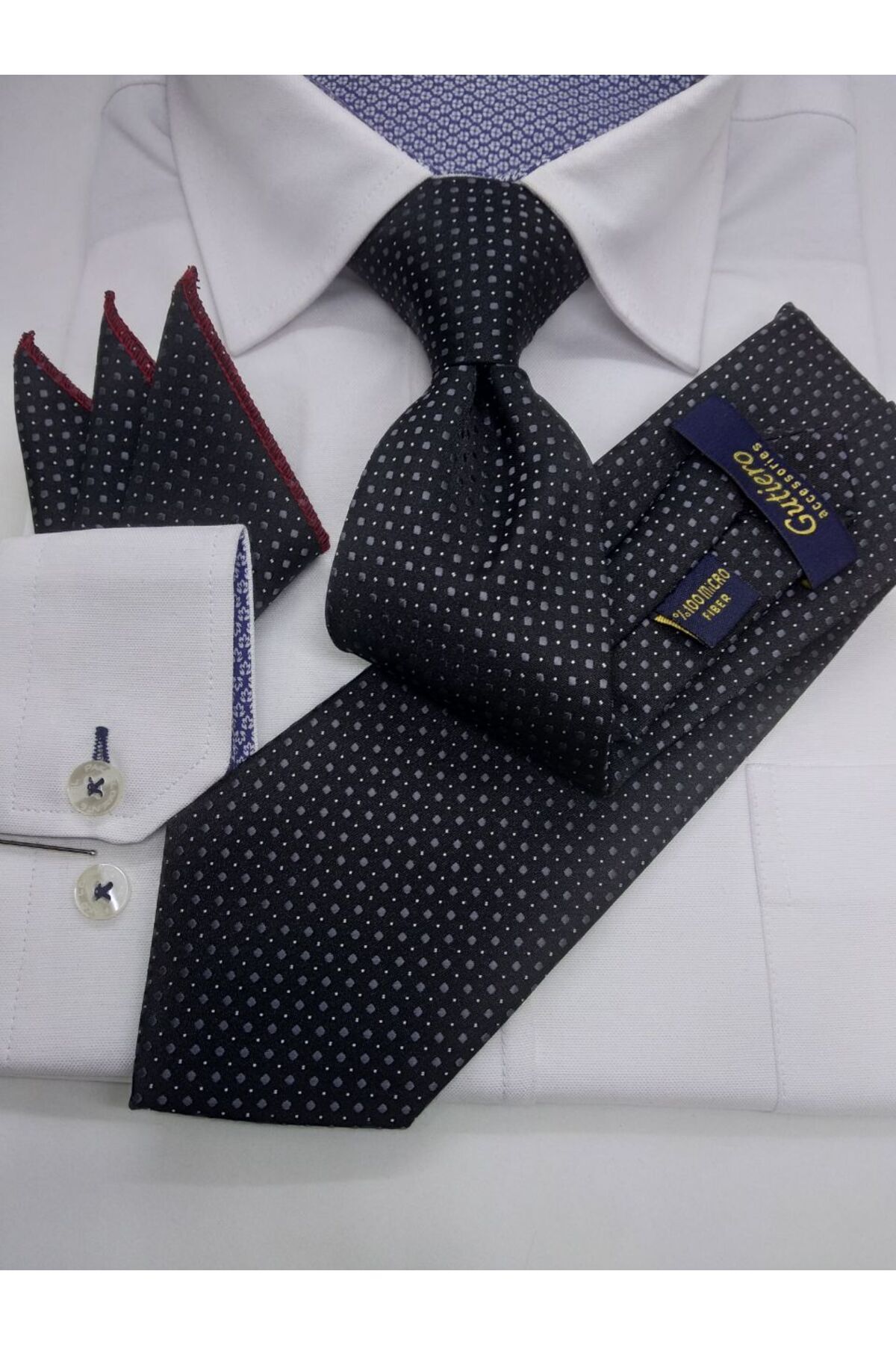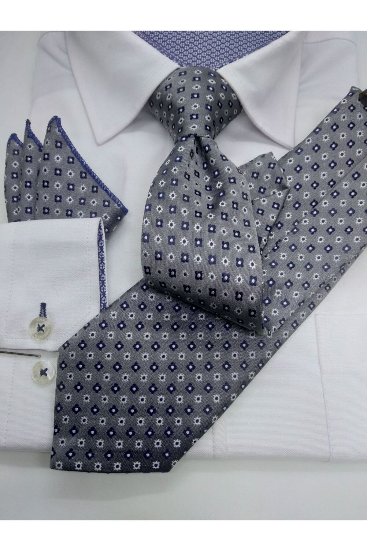 Lacivert Desenli Mendilli Klasik Kravat Lacivert Desenli Mendilli Klasik Kravat KK7-690 تک سایز