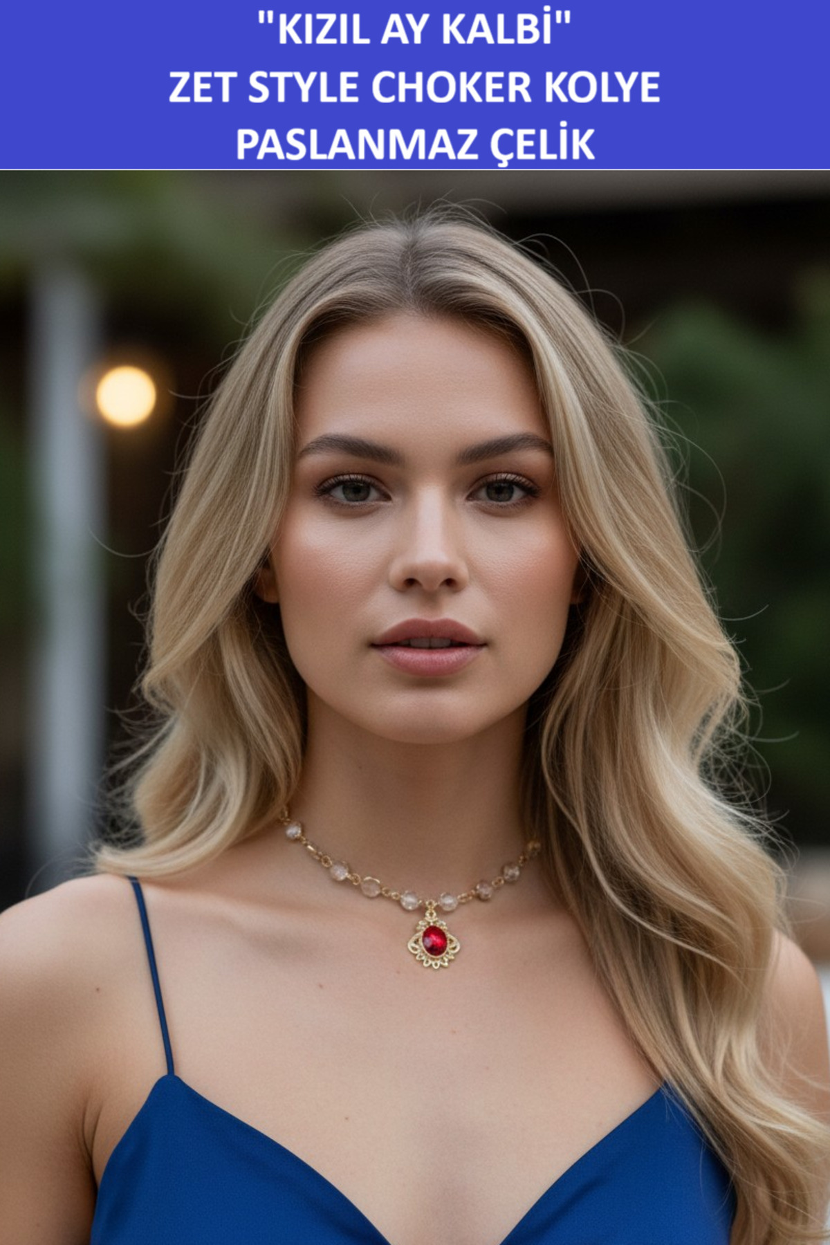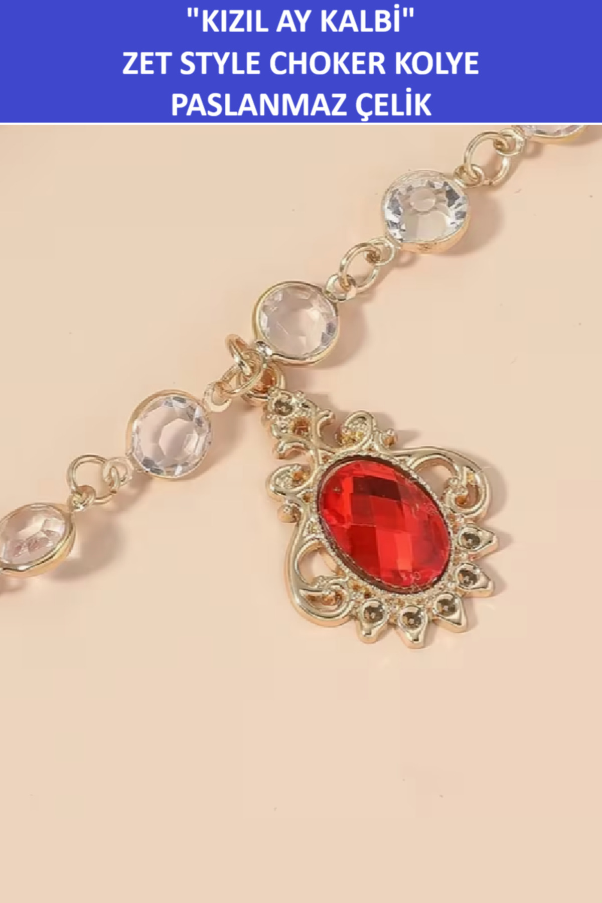 Zet Style ““Kızıl Ay Kalbi – Mistik Kristal Choker” Paslanmaz Çelik Kolye - Muhteşem bir Hediye Zet Style ““Kızıl Ay Kalbi – Mistik Kristal Choker” Paslanmaz Çelik Kolye - Muhteşem bir Hediye ZS0079 0