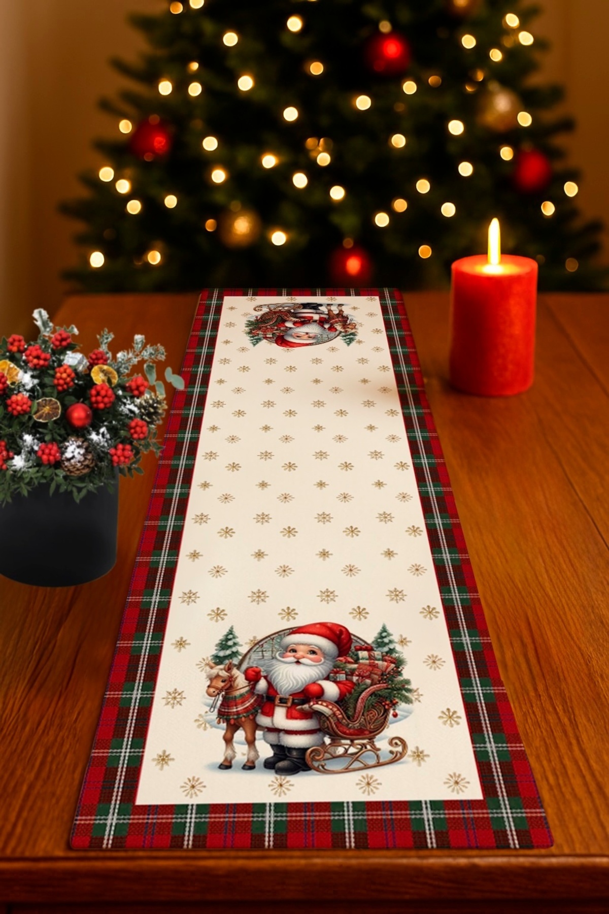 Dijital Baskılı Ekose Çerçeveli Noel Baba Yılbaşı Dekoratif Masa Runner Dijital Baskılı Ekose Çerçeveli Noel Baba Yılbaşı Dekoratif Masa Runner MNZ-16109 تک سایز
