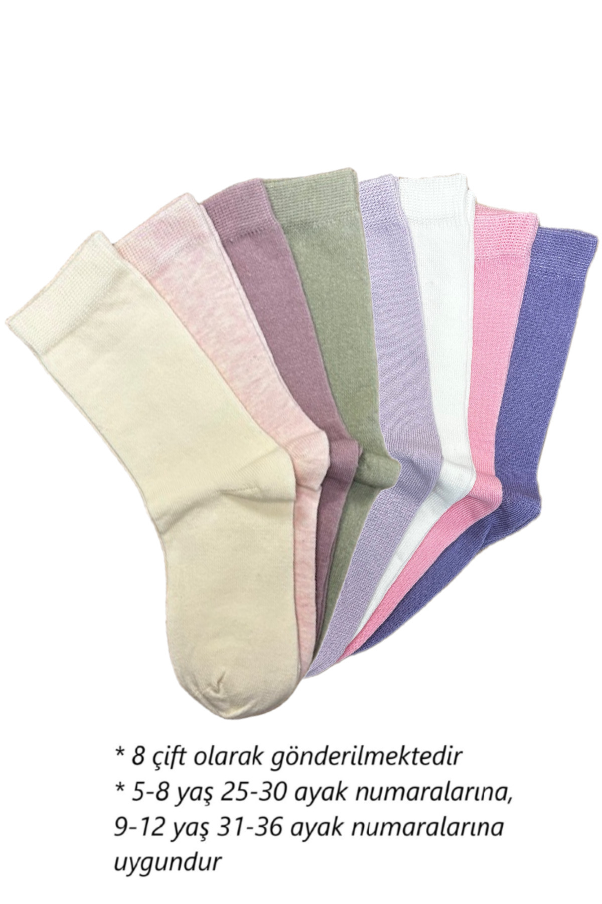 8'li Dikişsiz Çocuk Çorap Yüksek Pamuklu 8 Çift 8'li Dikişsiz Çocuk Çorap Yüksek Pamuklu 8 Çift kids812 9-12 Yaş