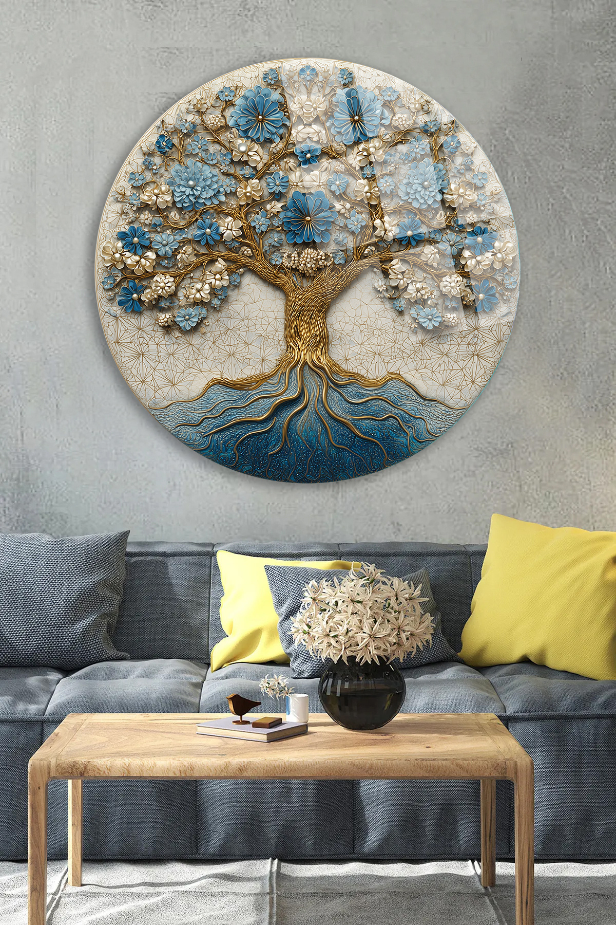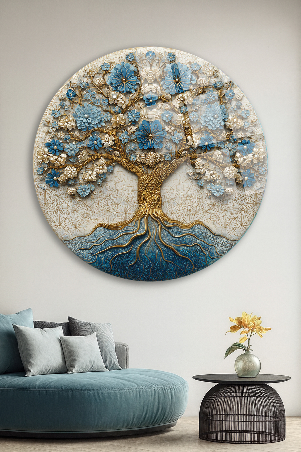 MAVİ ÇİÇEKLİ HAYAT AĞACI DESEN KIRILMAZ LÜKS CAM TABLO MAVİ ÇİÇEKLİ HAYAT AĞACI DESEN KIRILMAZ LÜKS CAM TABLO mvcchsygk 50 x 50