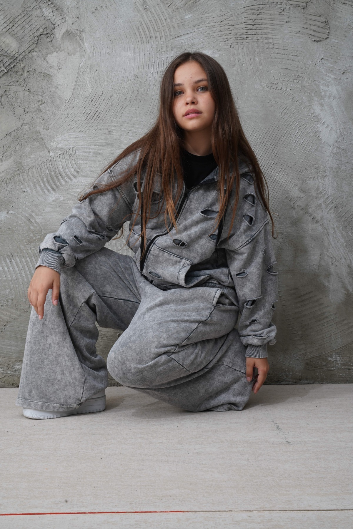 Yırtık Detaylı Eşofman Takımı Yırtık Detaylı Eşofman Takımı 25wb118 13 Yaş