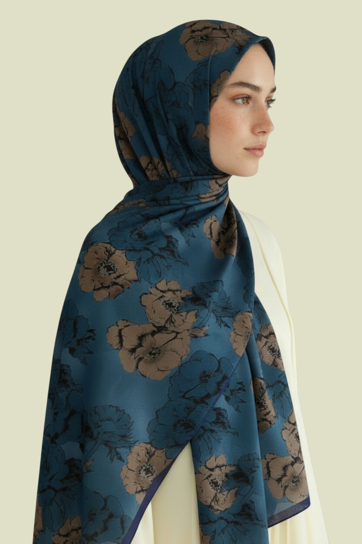 SEREN ÇİÇEKLİ COTTON ŞAL - LACİVERT / KAHVERENGİ SEREN ÇİÇEKLİ COTTON ŞAL - LACİVERT / KAHVERENGİ 8681676078771 70 x 200