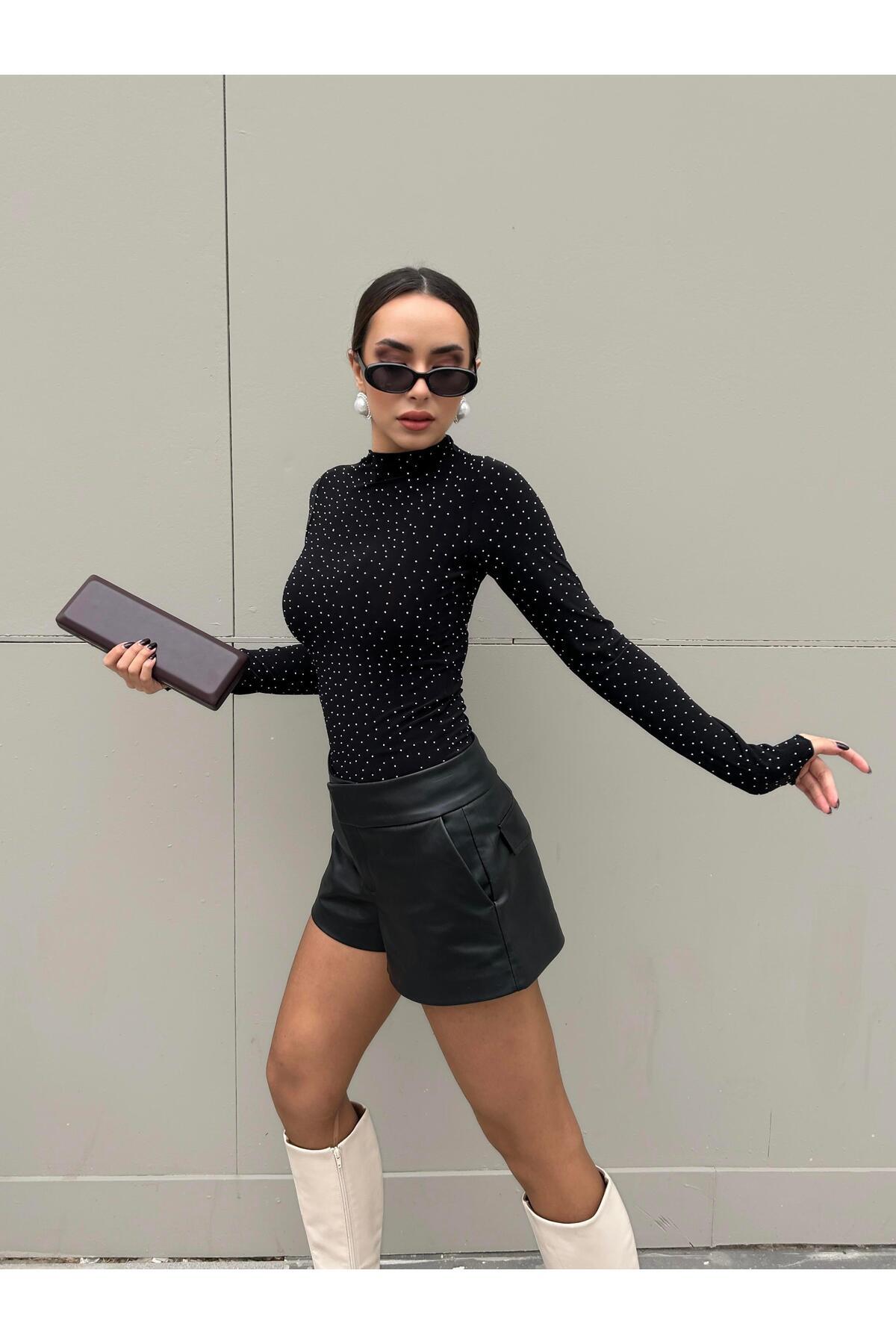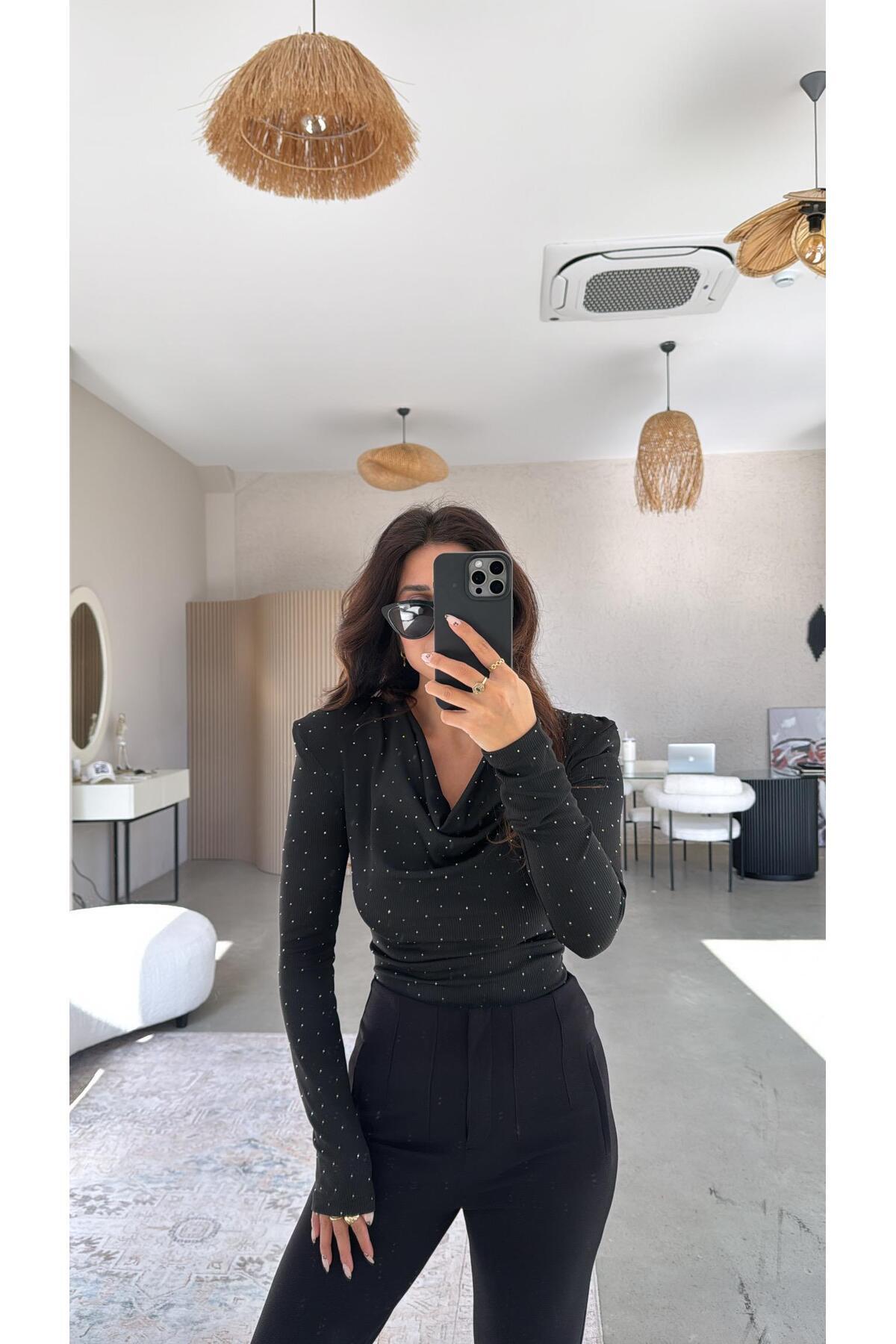 Kadın Siyah Sandy Kumaş Taşlı Bluz 30098 Kadın Siyah Sandy Kumaş Taşlı Bluz 30098 L