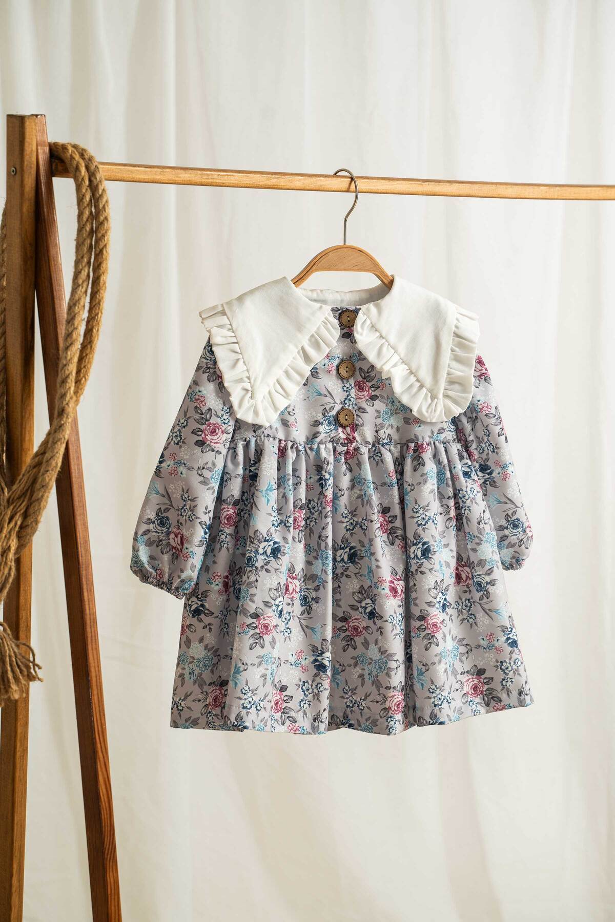 Çiçekli Şifon Uzun Kol Kız Bebek Elbise Çiçekli Şifon Uzun Kol Kız Bebek Elbise MCB009 4-5 Yaş