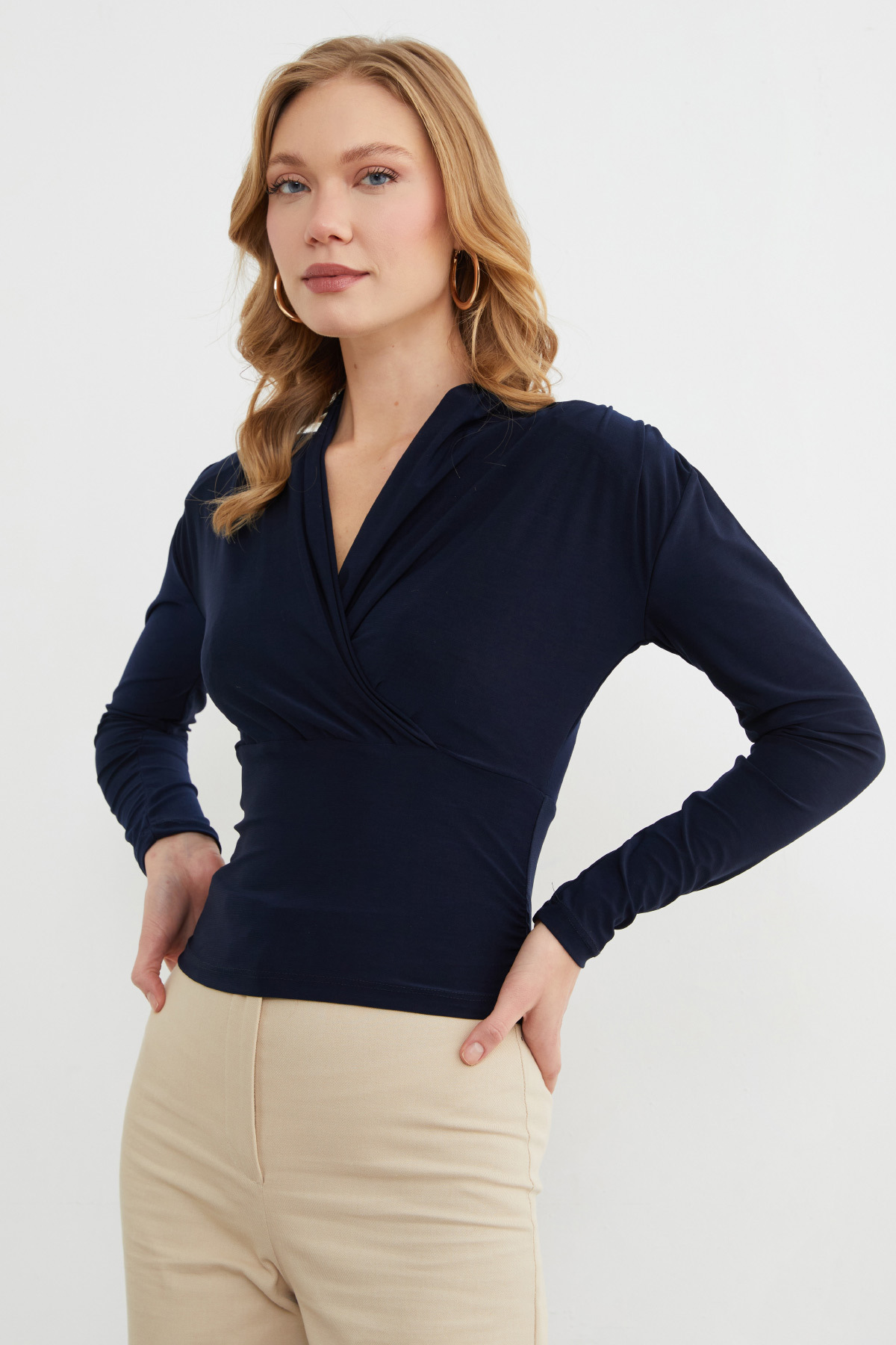 Omuz Vatkalı Kruvaze Yaka Bluz Omuz Vatkalı Kruvaze Yaka Bluz 26KGB7510139117 L