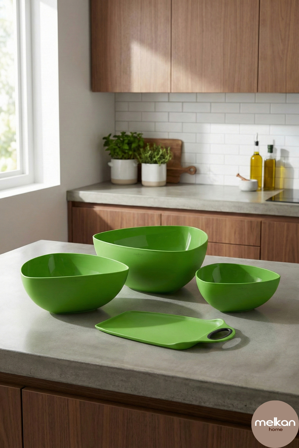 4 Parça Pratik Hazırlık ve Sunum Seti - Kaseler | 3 Boy Karıştırma Kabı & Kesme Tahtası Set 4 Parça Pratik Hazırlık ve Sunum Seti - Kaseler | 3 Boy Karıştırma Kabı & Kesme Tahtası Set 3956 تک سایز