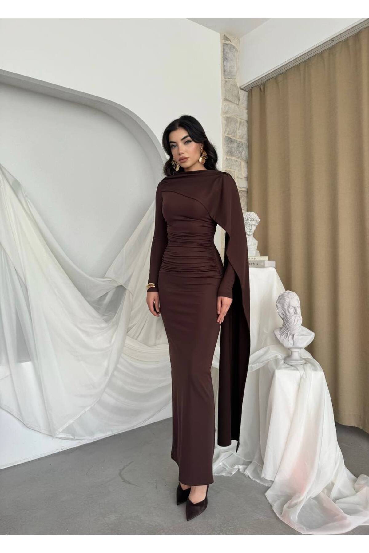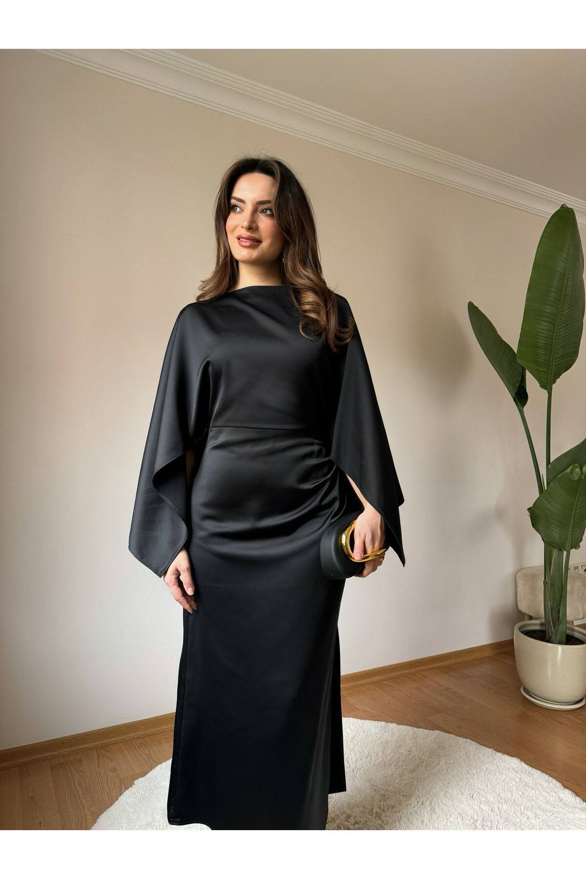 KADIN ASİMETRİK YAKA BELDEN OTURAN YARASA KOL SALAŞ SATEN ELBİSE KADIN ASİMETRİK YAKA BELDEN OTURAN YARASA KOL SALAŞ SATEN ELBİSE DRKNZKN-5DNCV L